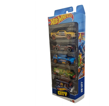 Hit the gas on any Hot Wheels collection with a 5-pack of assorted vehicles in 1:64 scale.Each die-cast toy car or truck features authentic details and eye-catching decos that kids and collectors love.These packs all have a specific theme to appeal to collectors and car enthusiasts alike. Vehicles are perfect for play or display kids and collectors will want them all.