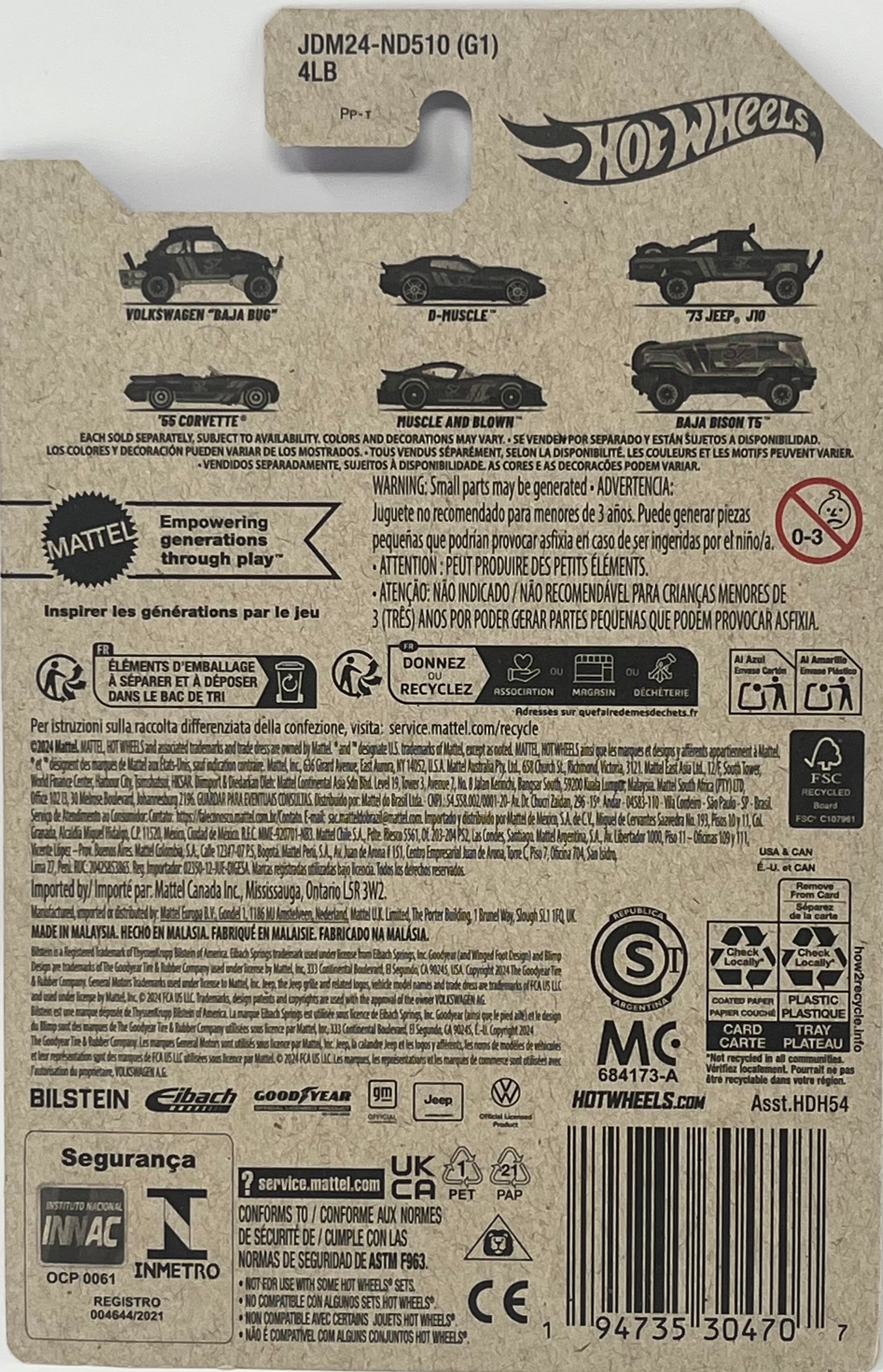 The product is a Hot Wheels diecast car from the 57th Anniversary collection, featuring a purple and gold design. It is a muscle car with a blown engine, making it a unique and eye-catching addition to any Hot Wheels collection. Designed for toy and hobby enthusiasts who appreciate contemporary diecast vehicles.