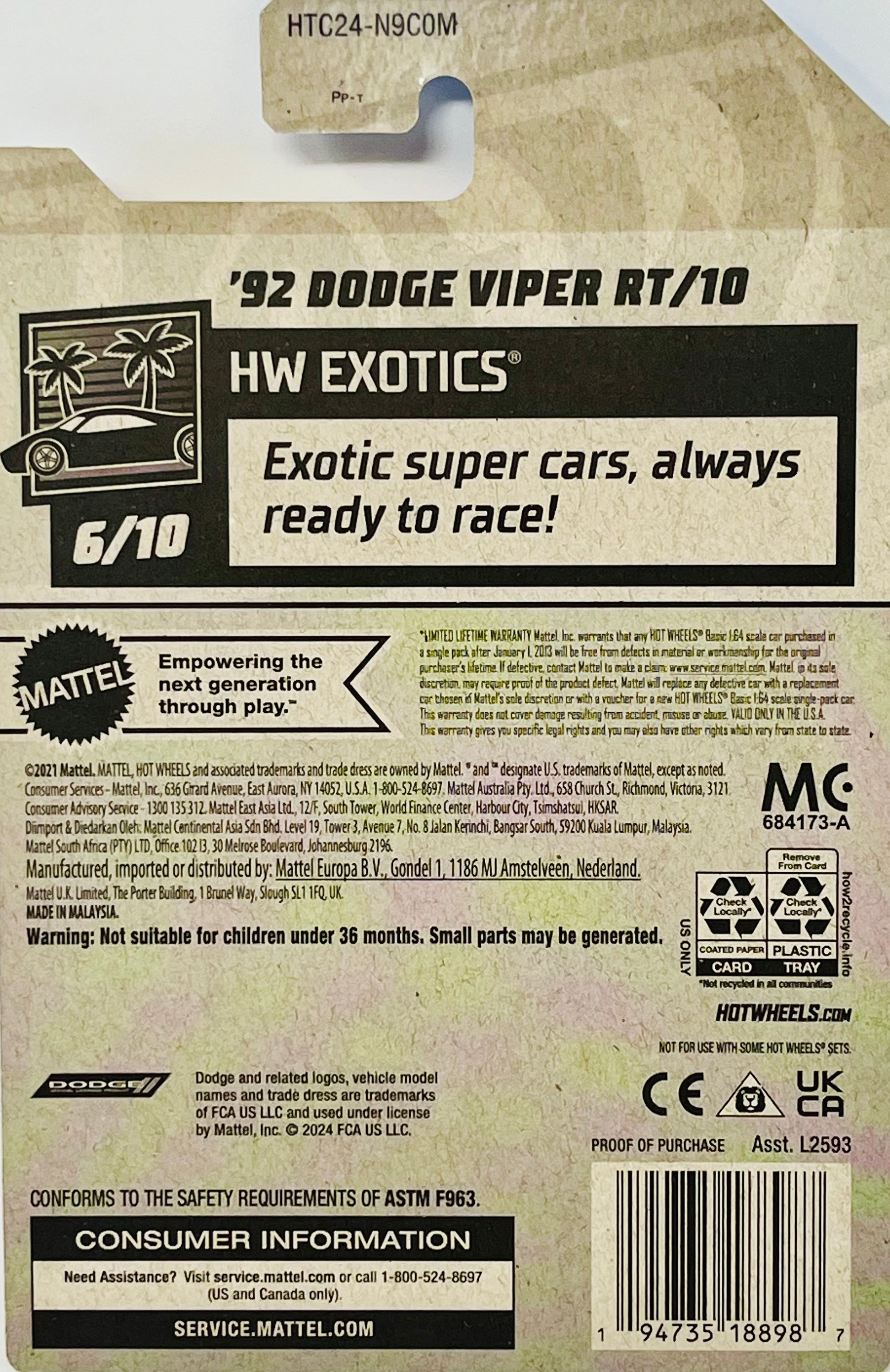 Hot Wheels ‘92 Dodge Viper RT/10 Yellow 218/250 HW EXOTICS 6/10