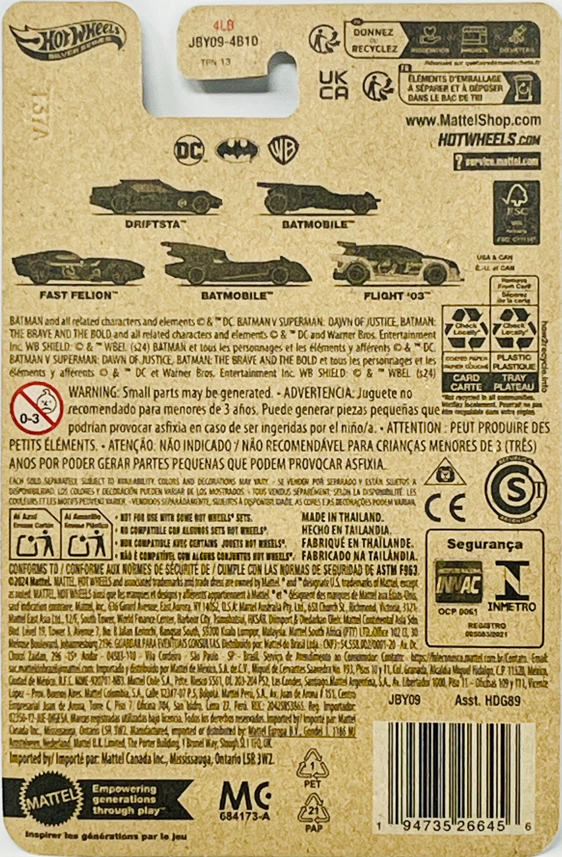 Cruise the streets of Gotham City in a Batmobile or as an evil villain evading justice in a vehicle from this Batman-themed collection. Each selection is 1:64 scale and features iconic decos instantly recognizable from the global franchise. Different mixes released throughout the year provide fresh selections and, with some all-zine castings in each mix, kids and collectors will want them all! Each sold separately, subject to availability. Styles, colors and decorations may vary. For ages 3 and up.