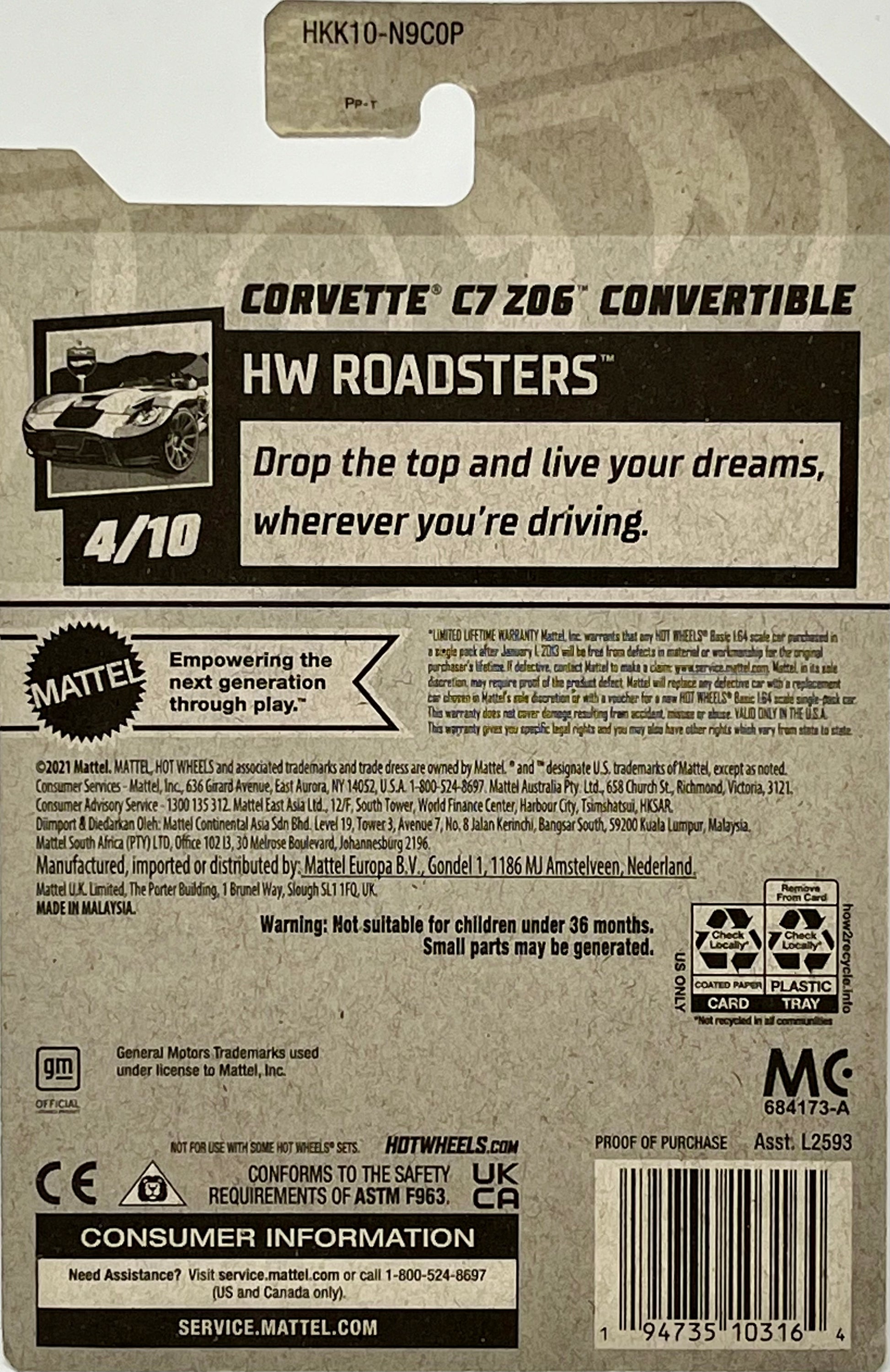 Hot Wheels Corvette C7 Z06 Convertible, HW Roadsters 4/10 [Burnt Orange] 34/250