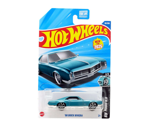The Hot Wheels '66 Buick Riviera captures the sleek elegance and raw power of this iconic American coupe! This 1:64 scale die-cast model features the signature long, low body, hidden headlights, and bold styling that made the '66 Riviera a legend. With custom Hot Wheels details and a stance that demands attention, this Riviera is perfect for both collectors and muscle car enthusiasts alike!
