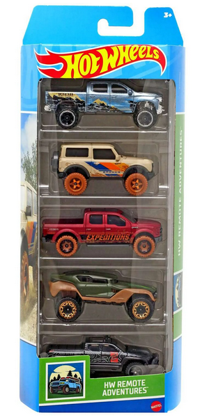 Introducing the Hot Wheels Remote Adventures 5-Pack, where the thrill of off-road exploration meets the excitement of remote-controlled racing! This action-packed collection features five die-cast vehicles inspired by rugged terrain and epic adventures.