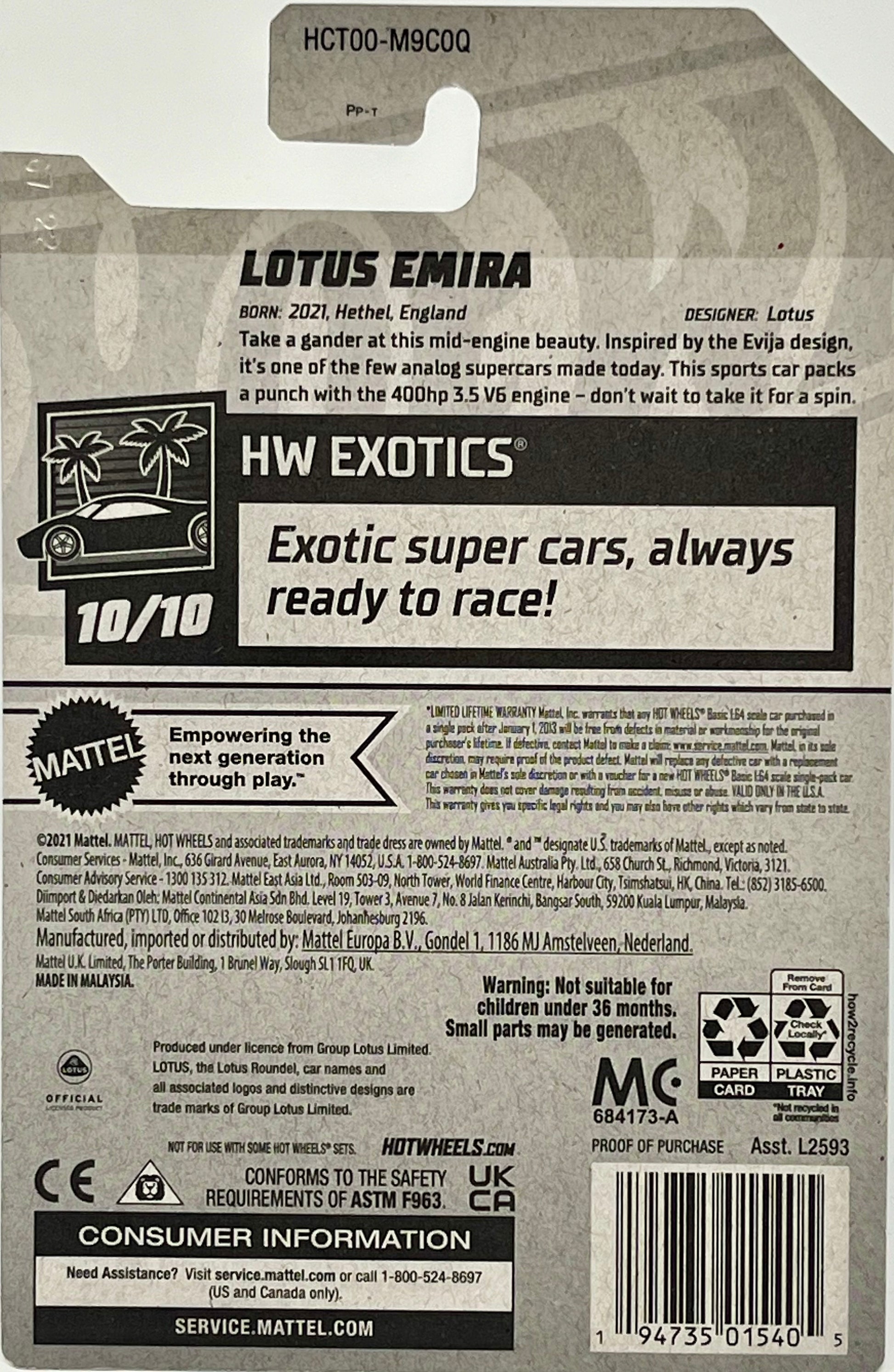 Hot Wheels Lotus Emira (Blue) with Protector