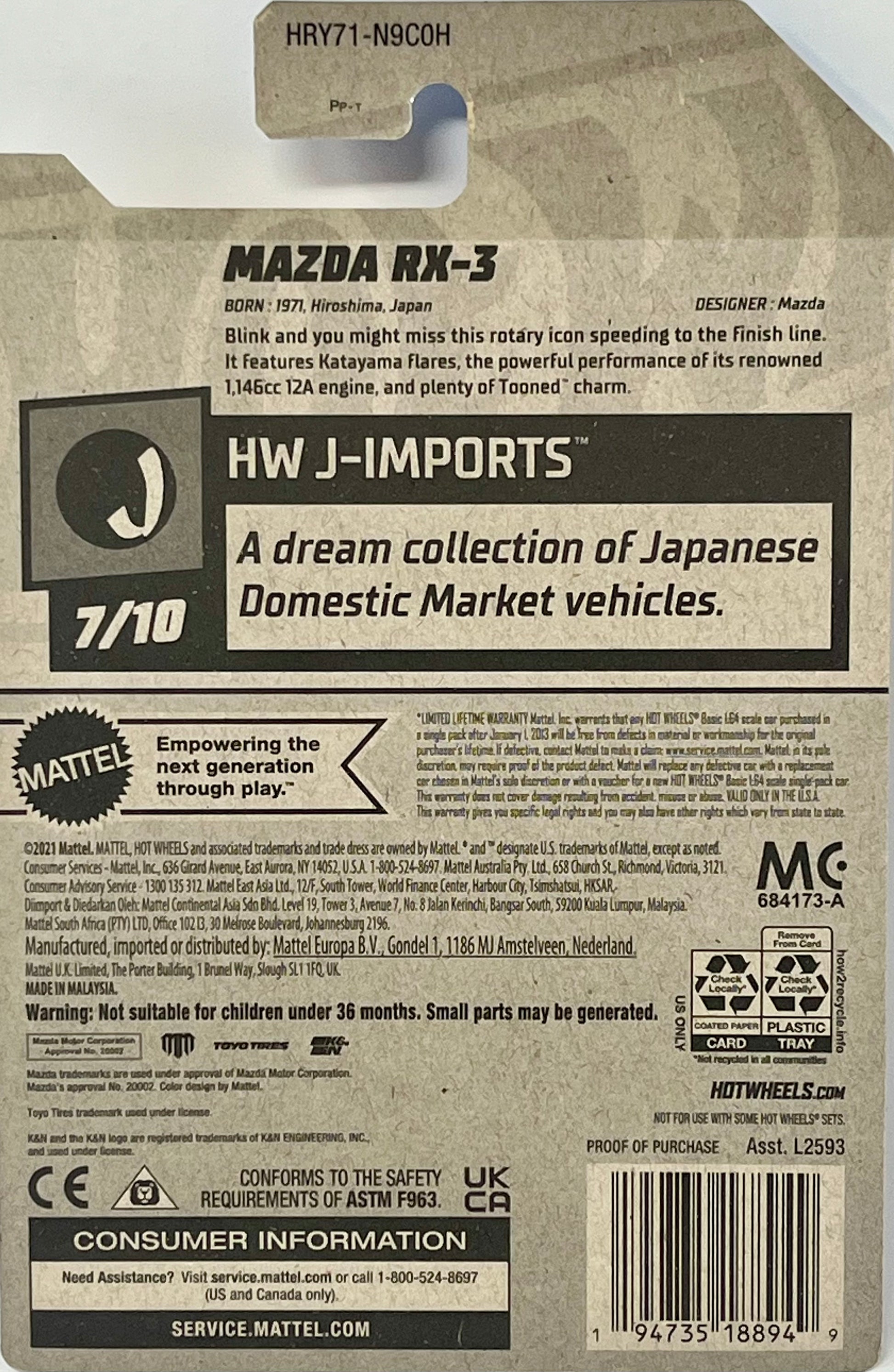 Hot Wheels Mad Mike Mazda RX-3 Tooned 156/250 HW J-IMPORTS 7/10