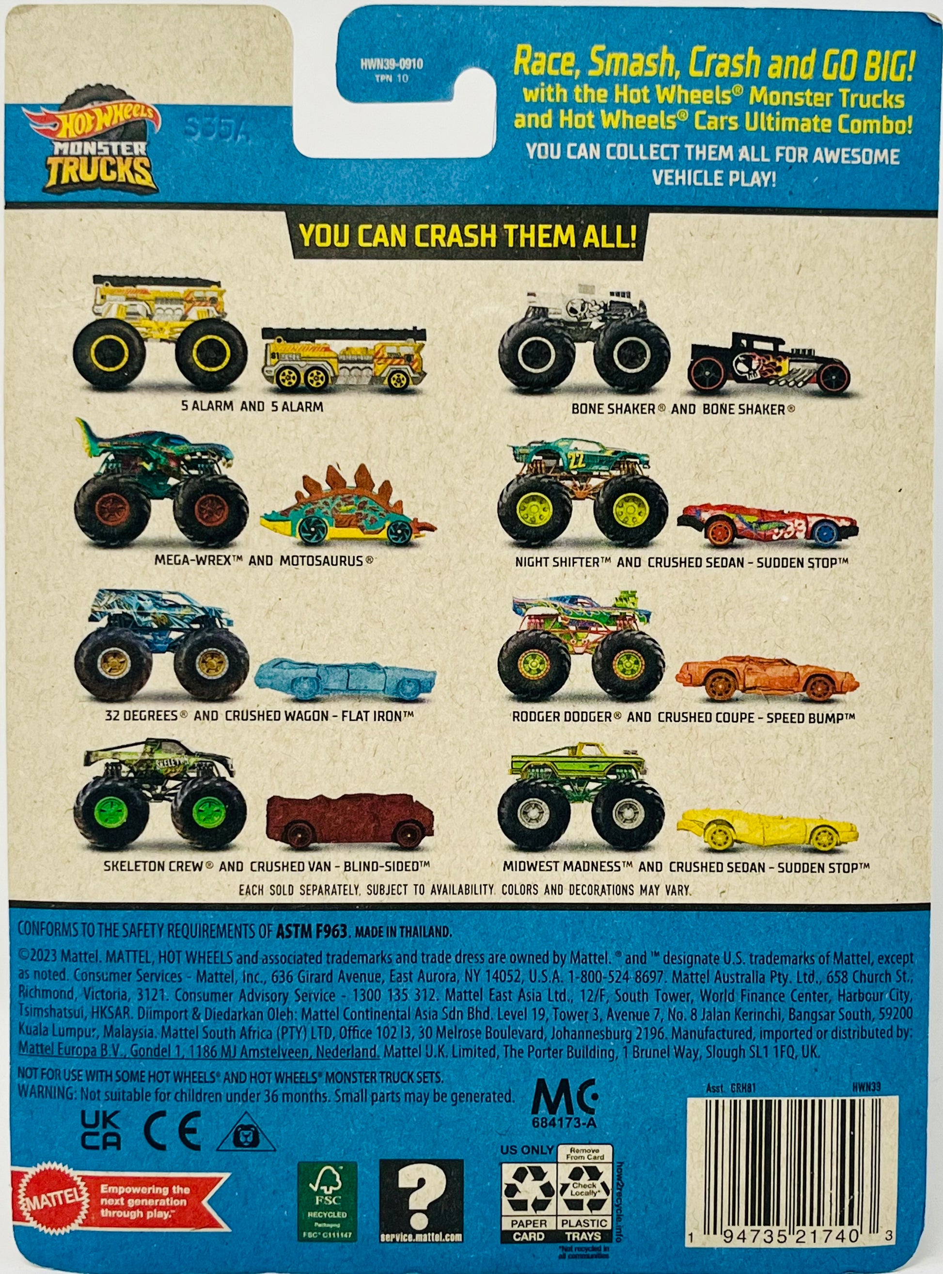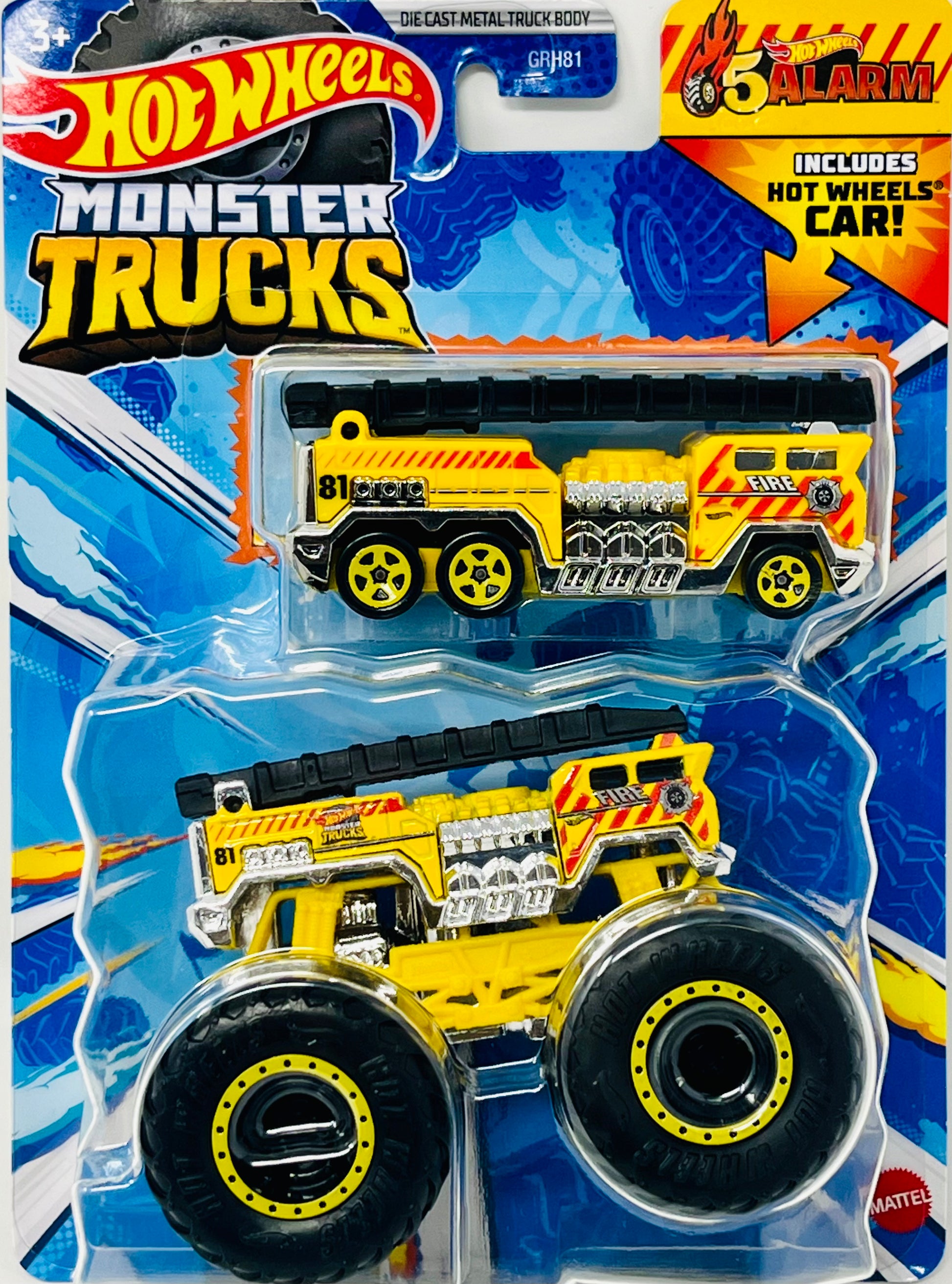 Hot Wheels Monster Truck & Car - 5 Alarm & 5 Alarm 1:64 Scale Yellow New