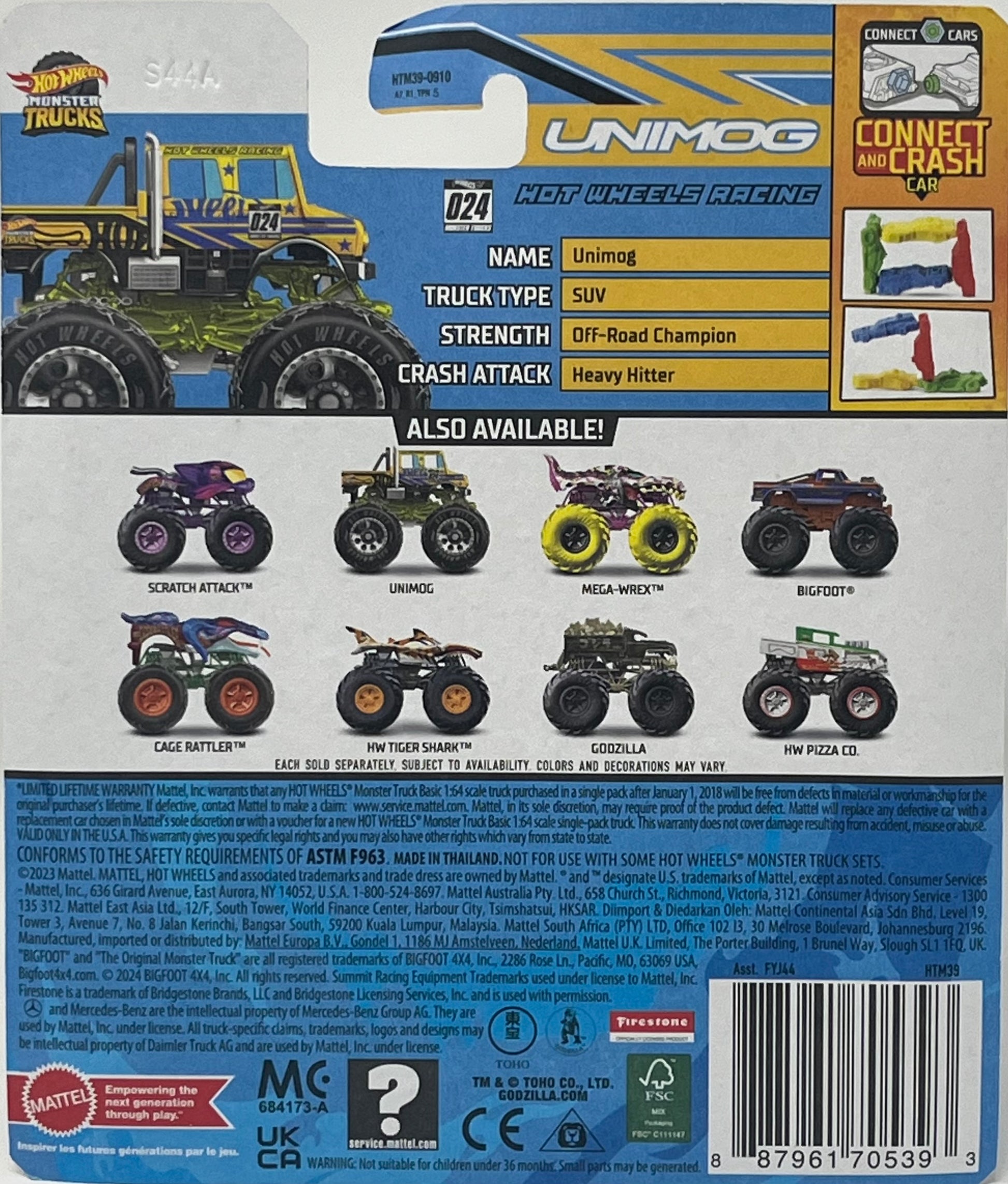 Hot Wheels Monster Truck Unimog Yellow Crash Legends Connect and Crash