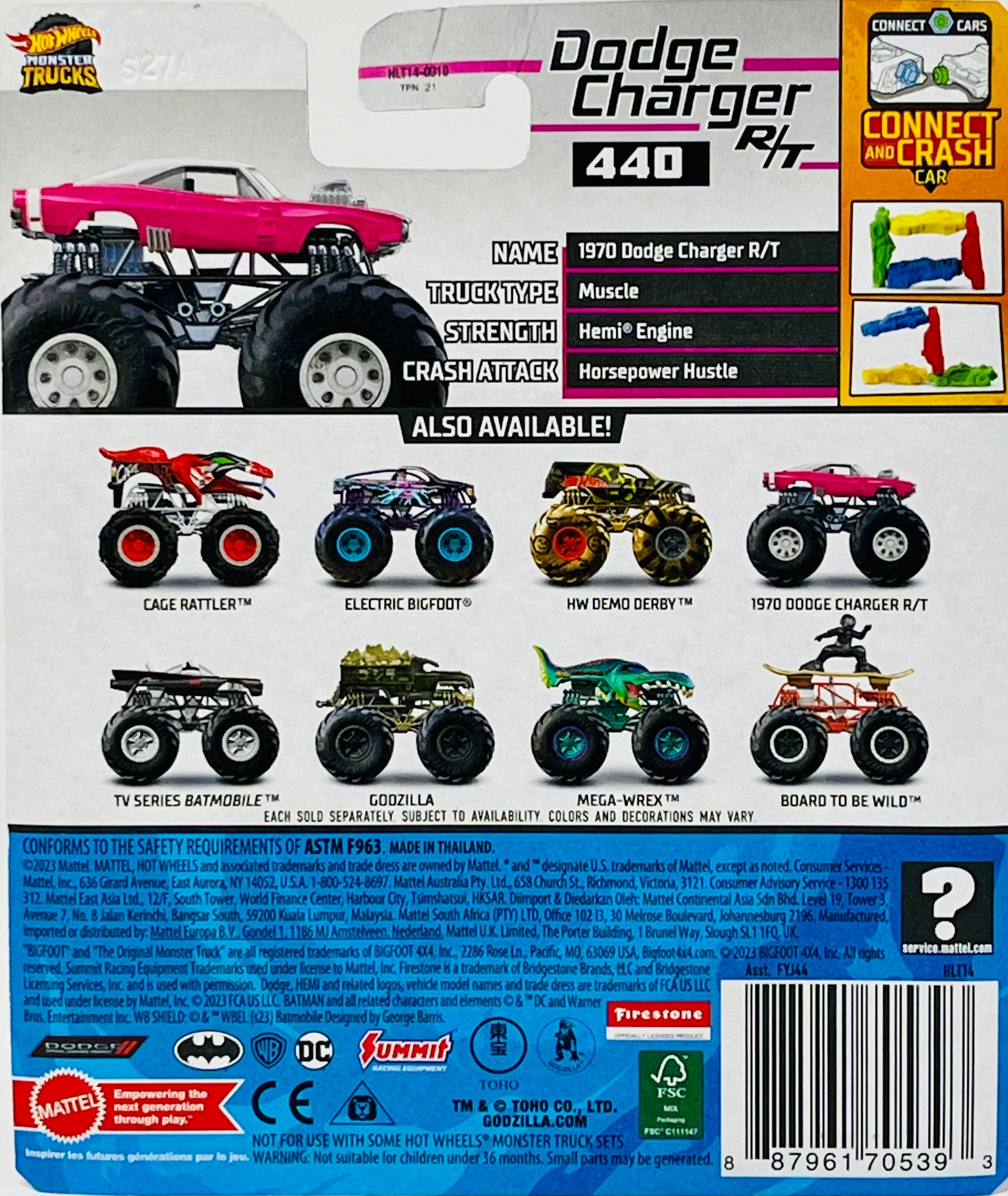 Hot Wheels Monster Trucks 1970 Dodge Charger R/T Pink 1:64 Scale