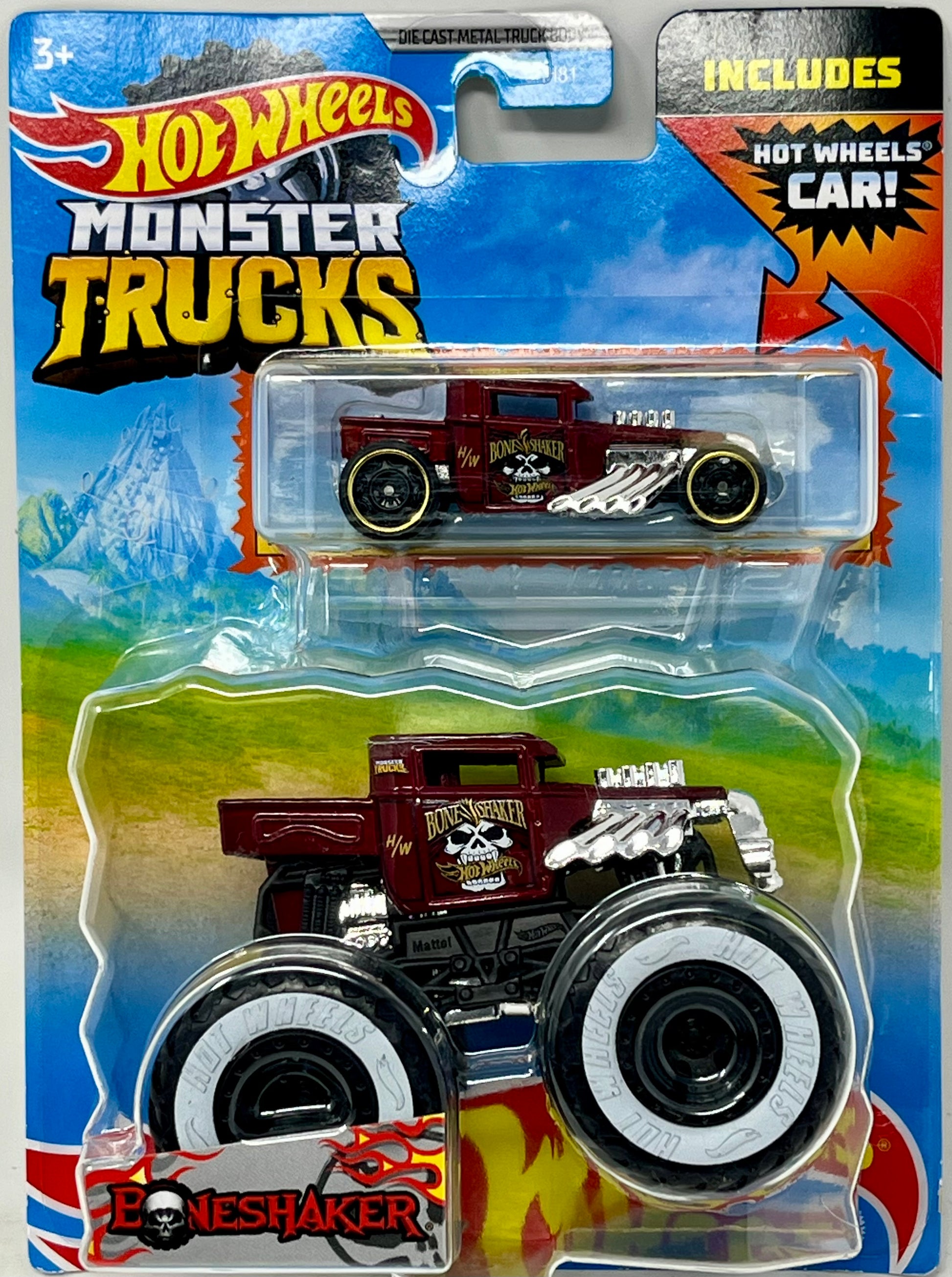 Hot Wheels Monster Trucks Bone Shaker and Bone Shaker Car Burgundy With Skull