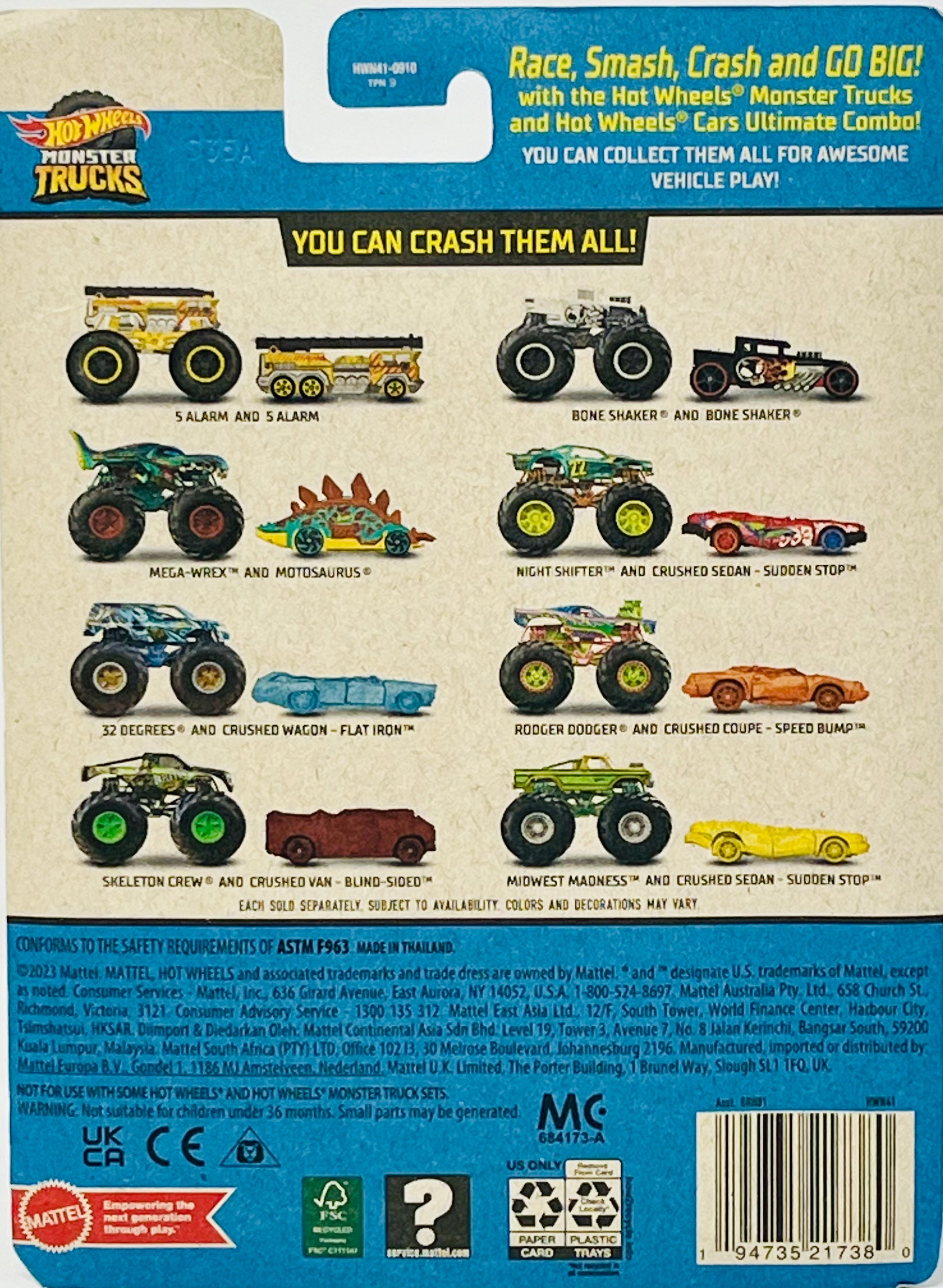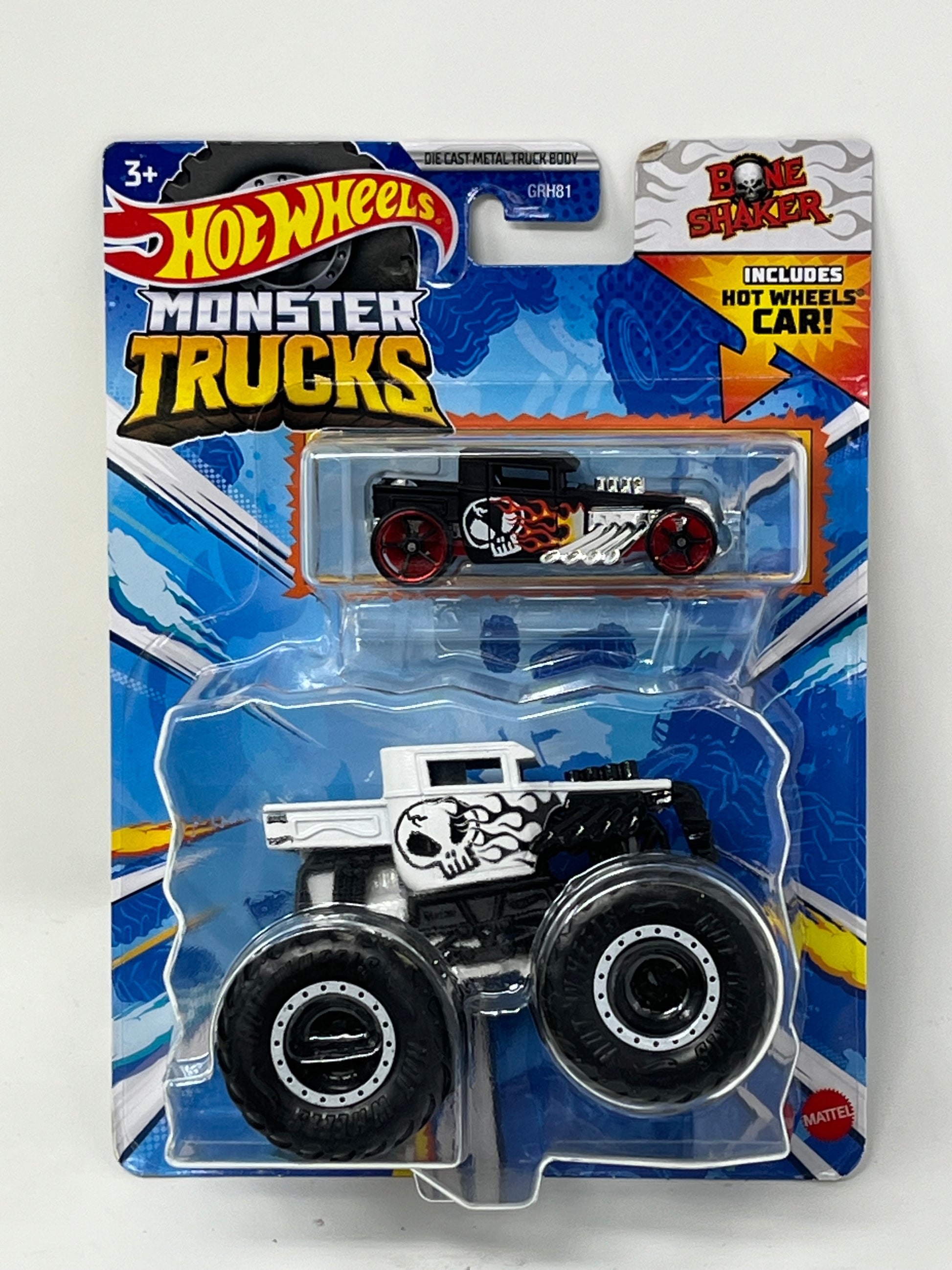 Hot Wheels Monster Trucks Bone Shaker w Car 1:64 Race Smash Crash and Go Big