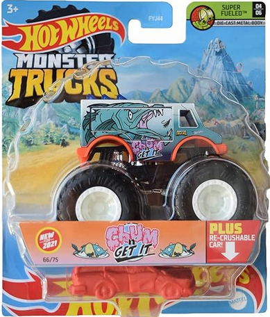 Giant wheels and rad details— kids will want to collect them all! Every Monster Truck in the collection includes a collectible wheel Each monstrous machine is packed out with awesome stats on back giving details of their strength, crash attack, motor-vation and more Built to smash and crash everything in sight, crushing any car in the way Nothing can stop the baddest vehicles ever built for head-to-head competition