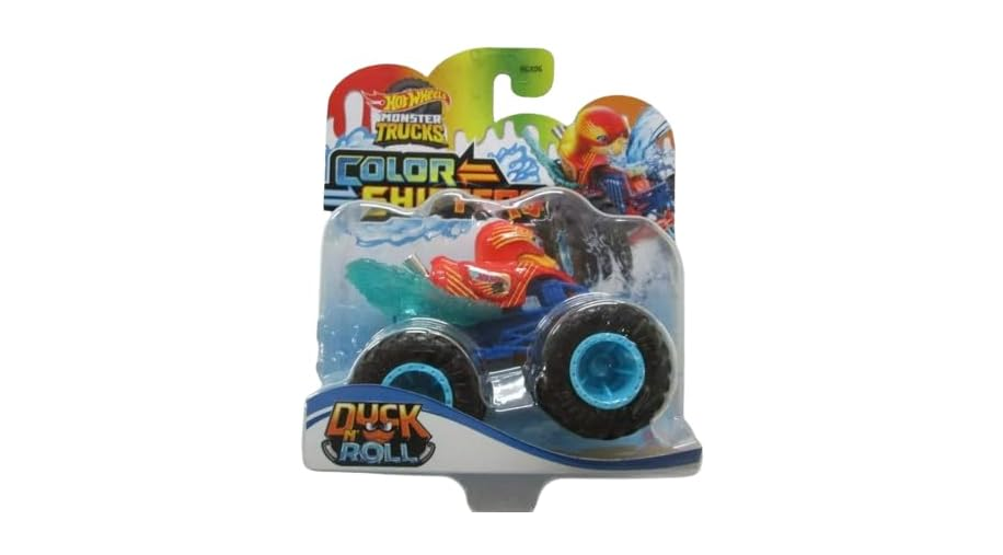 Get ready for some monster truck mayhem with the Hot Wheels Monster Trucks Color Shifters Duck N Roll! This awesome toy truck is part of the Color Shifters line, which means its color changes with the push of a button or exposure to cold water. Watch in amazement as the truck's vibrant hue shifts before your eyes, adding an extra layer of excitement to your playtime adventures. With its oversized tires and rugged design, the Duck N Roll is built to tackle any terrain, whether it's racing across the living room floor or crushing obstacles in the backyard. This tough and transformative monster truck is sure to provide hours of high-octane fun for kids of all ages.