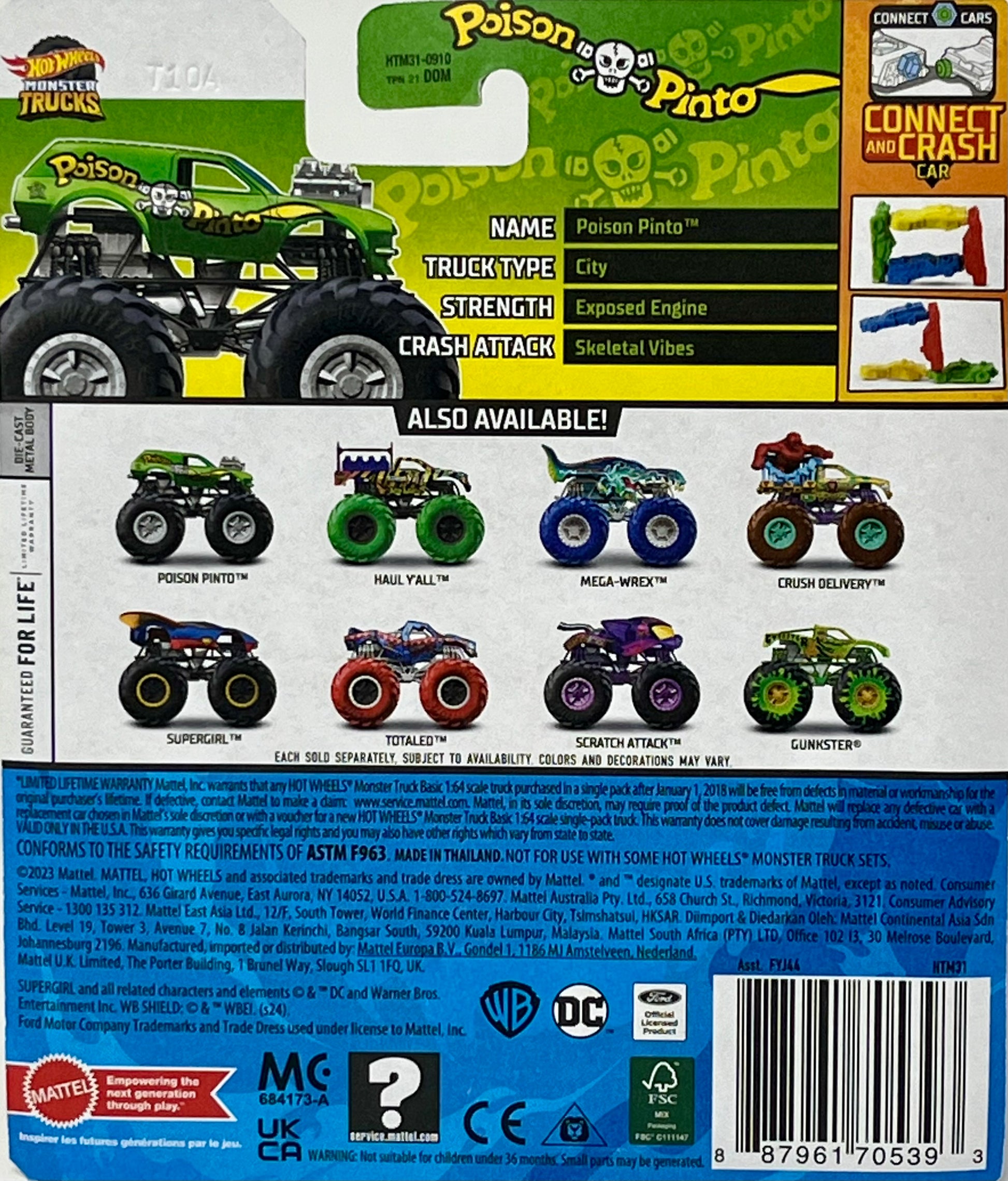 Hot Wheels Monster Trucks POISON PINTO Green Crash Legends Series 4/5
