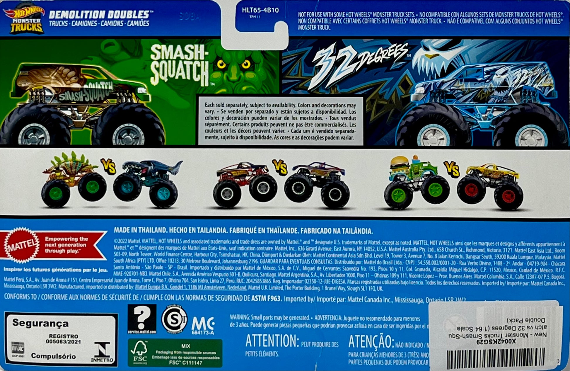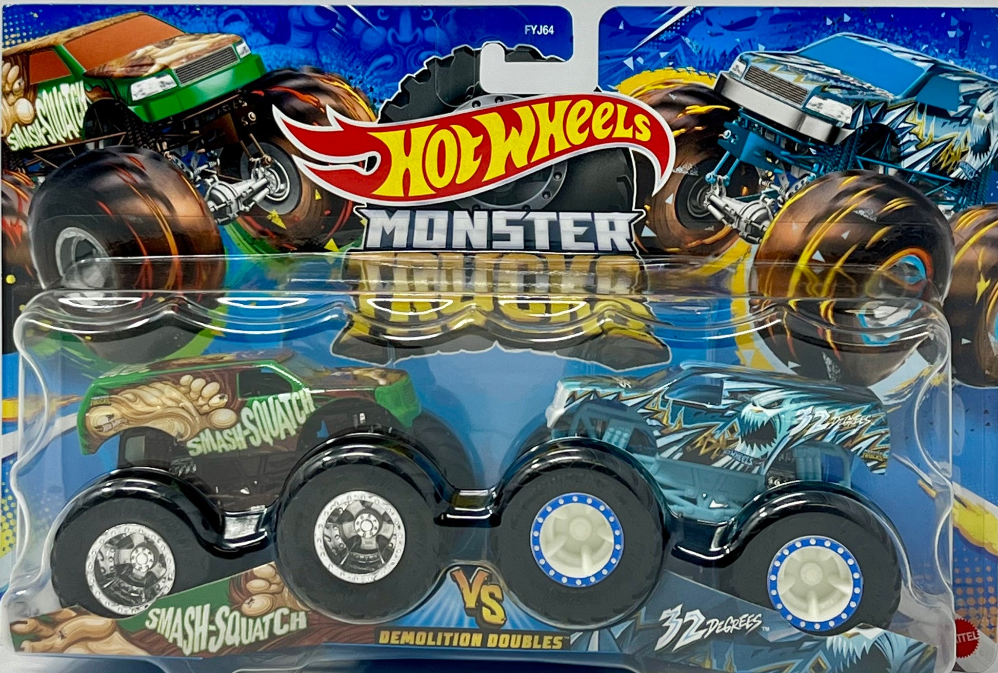 Hot Wheels Monster Trucks Smash Squatch vs 32 Degrees Demolition Doubles