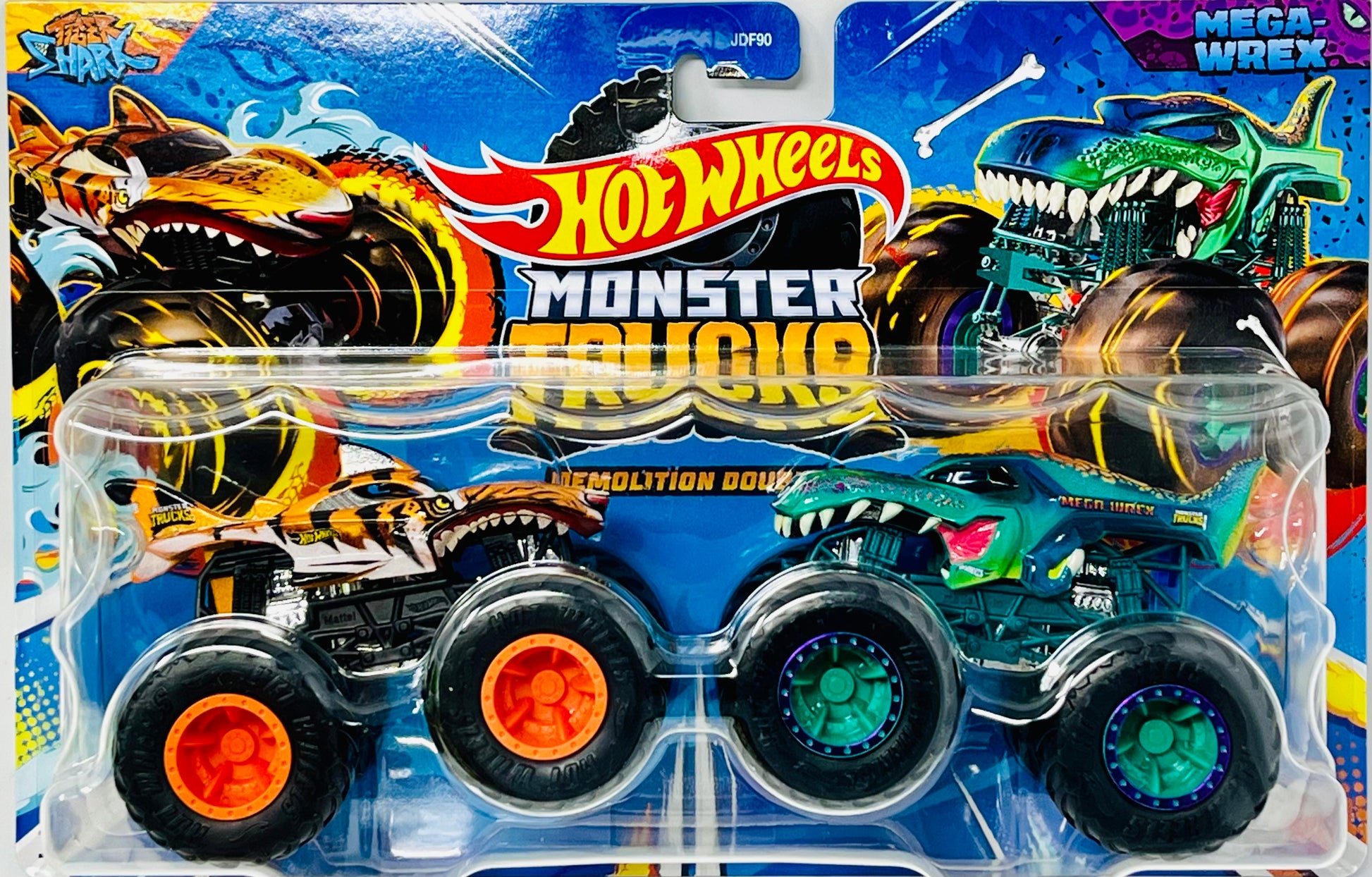 Hot Wheels Monster Trucks Tiger Shark vs. Mega Wrex Demolition Doubles 1:64