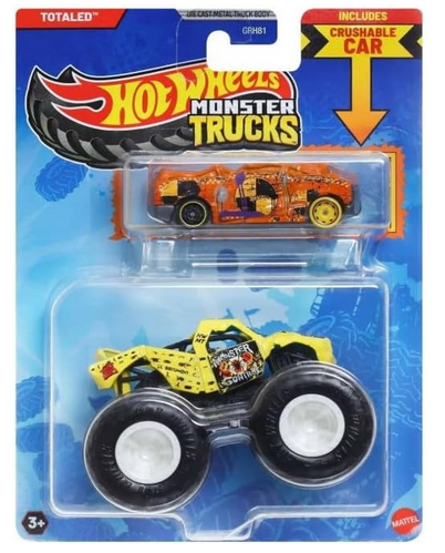Get ready for epic crashes with Hot Wheels Monster Trucks Totaled Series! This 1:64 scale die-cast vehicle comes with a crushable car that's perfect for recreating intense monster truck action. Watch as your monster truck dominates the competition by crushing and totaling the included vehicle in dramatic fashion. The authentic detailing and durable die-cast construction let kids create their own high-octane stunts and demolition scenarios. Perfect for both play and display, this Hot Wheels Monster Truck brings the thrill of monster truck shows right to your home. Add this crushing machine to your collection and let the destruction begin! Each set includes one monster truck and one crushable car for maximum smashing fun.