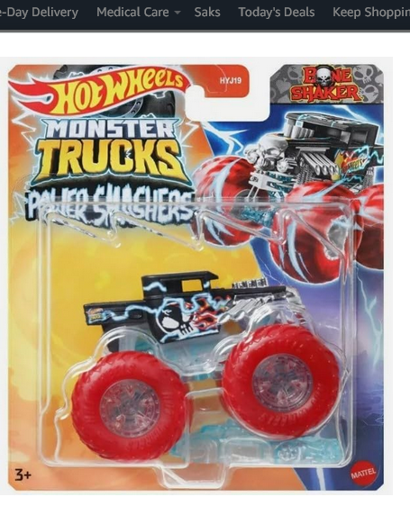 The Hot Wheels Monster Trucks 1:64 scale die-cast vehicles are kid-tested and approved with outrageous chassis designs and giant tires. There is an amazing variety in this collection of die-cast metal toy trucks that are sure to be real crowd pleasers! Giant premium wheels make a statement about the over-the-top creatures, entertaiment characters and Hot Wheels originals that amp up an experience of crashing and smashing fun or collecting to display. Every truck includes a connect-and-crash car, and cool packaging provides stats for each including name, truck type, strength, unique crash attack and motor-vation for great storytelling fun! Hot Wheels 2024 Monster Trucks. Die-Cast Metal Body.