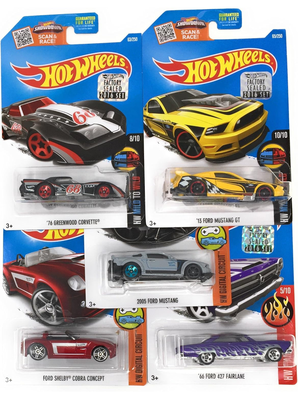 Hot Wheels Muscle Car Madness 5 Pack Random Diecast Bundle Set with Various Corvettes, Mustangs, Camaros, Chargers, GTO"s, Firebirds, Shelby, and More