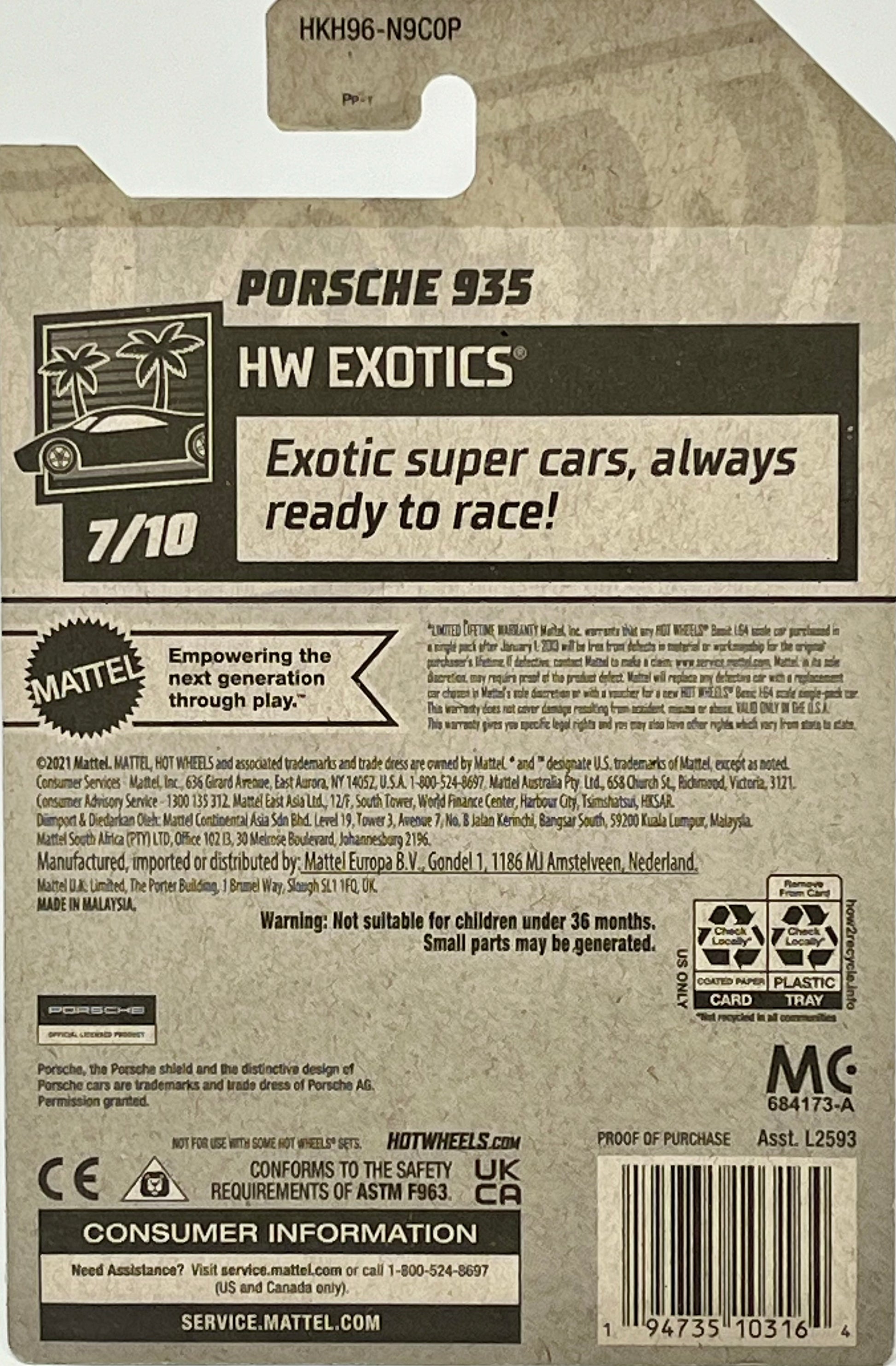 Hot Wheels HW Exotics 7/10 (2021) Blue Porsche 935 Toy Car 223/250