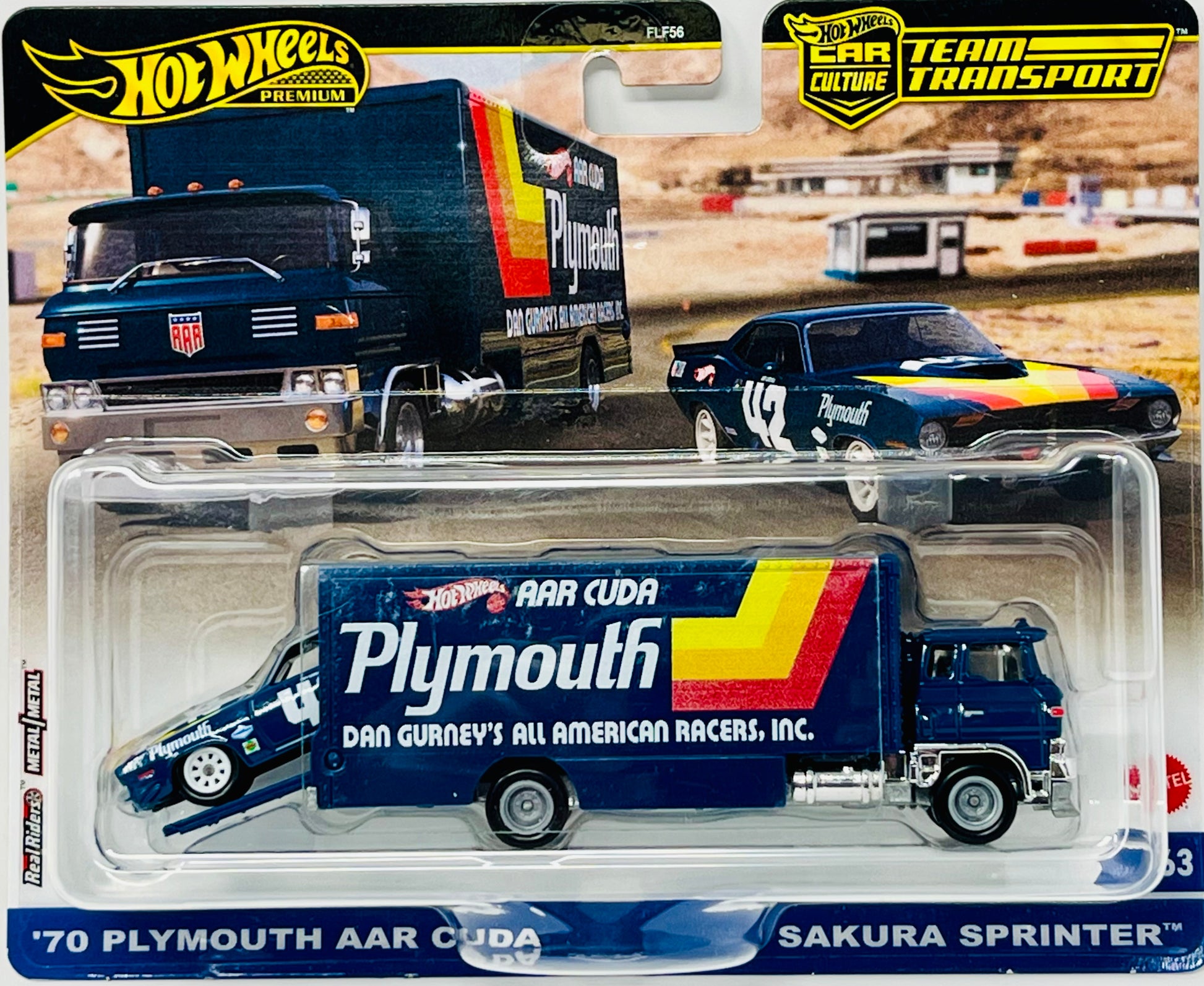 Hot Wheels Premium Team Transport Hauler 70' Plymouth AAR Cuda Sakura Sprinter Car Culture