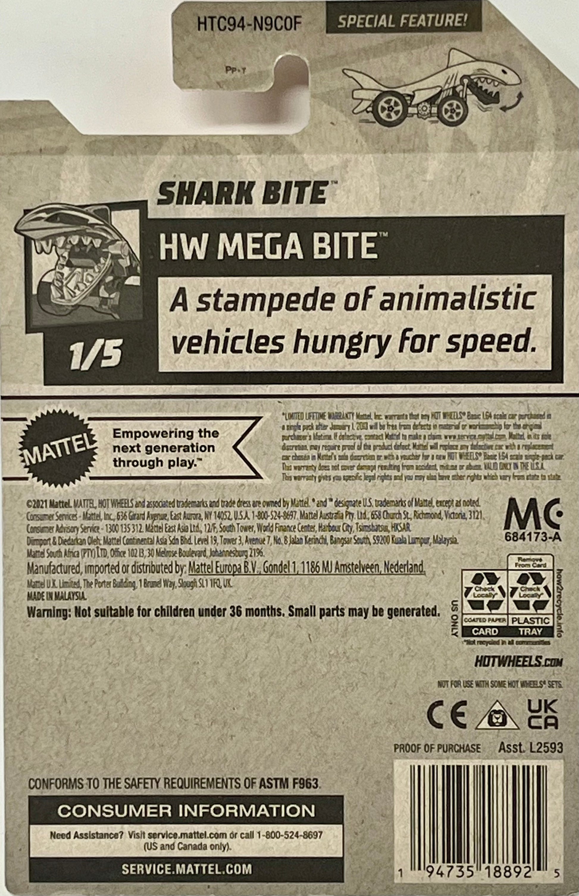 Hot Wheels Shark Bite Red HW Mega Bite 1/5 Let's Race
