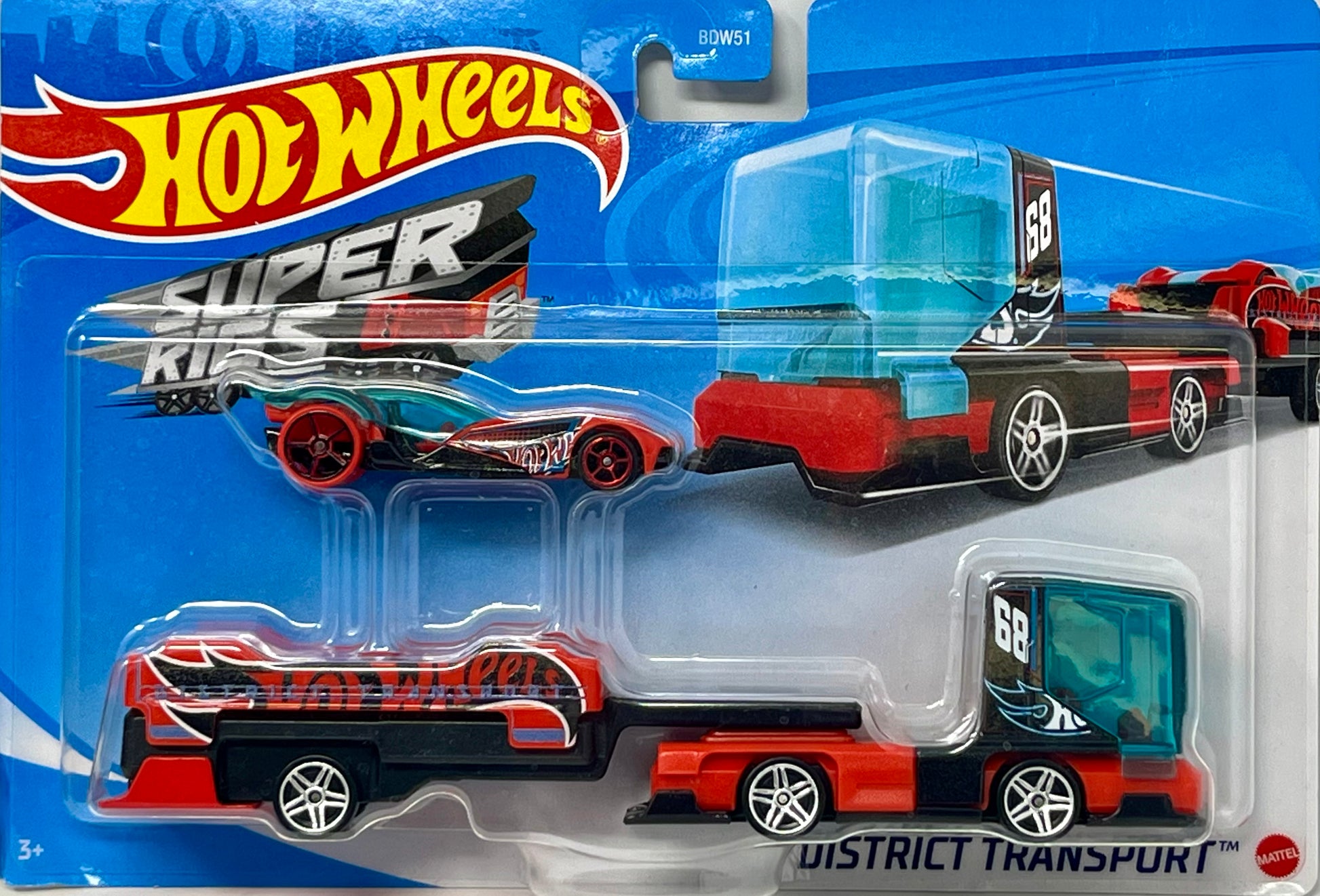 Haul up and speed off with Hot Wheels Super Rigs! This 1:64 scale set features a hauler and corresponding Hot Wheels car that can be used together for epic storytelling adventures. The car fits in the bed of the transporter so kids can haul their car like a real-life race team. The car is even compatible with Hot Wheels tracks. (Track sold separately.) Both vehicles have dynamic detailing that make them stand out in any collection perfect for play or display. Styles, colors and decorations may vary.