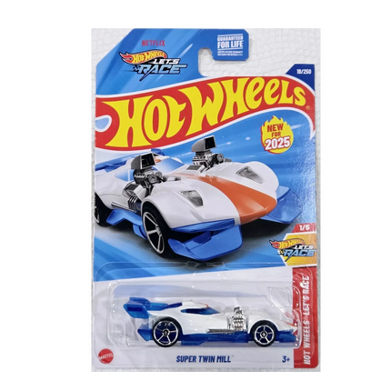 Buckle up for high-speed thrills with the Hot Wheels Super Twin Mill (White) Hot Wheels Let's Race 1/5 New For 2025! This sleek and stylish die-cast car is designed to captivate young racers with its eye-catching white hue and dynamic twin-engine design. Crafted with precision and attention to detail, this miniature masterpiece is built to withstand epic races and daring stunts. Unleash your need for speed on the iconic Hot Wheels tracks or create your own adrenaline-fueled adventures. With its aerodynamic body and high-performance wheels, the Super Twin Mill promises exhilarating acceleration and unmatched handling. Collect this limited-edition gem and experience the ultimate in Hot Wheels racing excitement. Get ready to leave your competition in the rearview mirror!