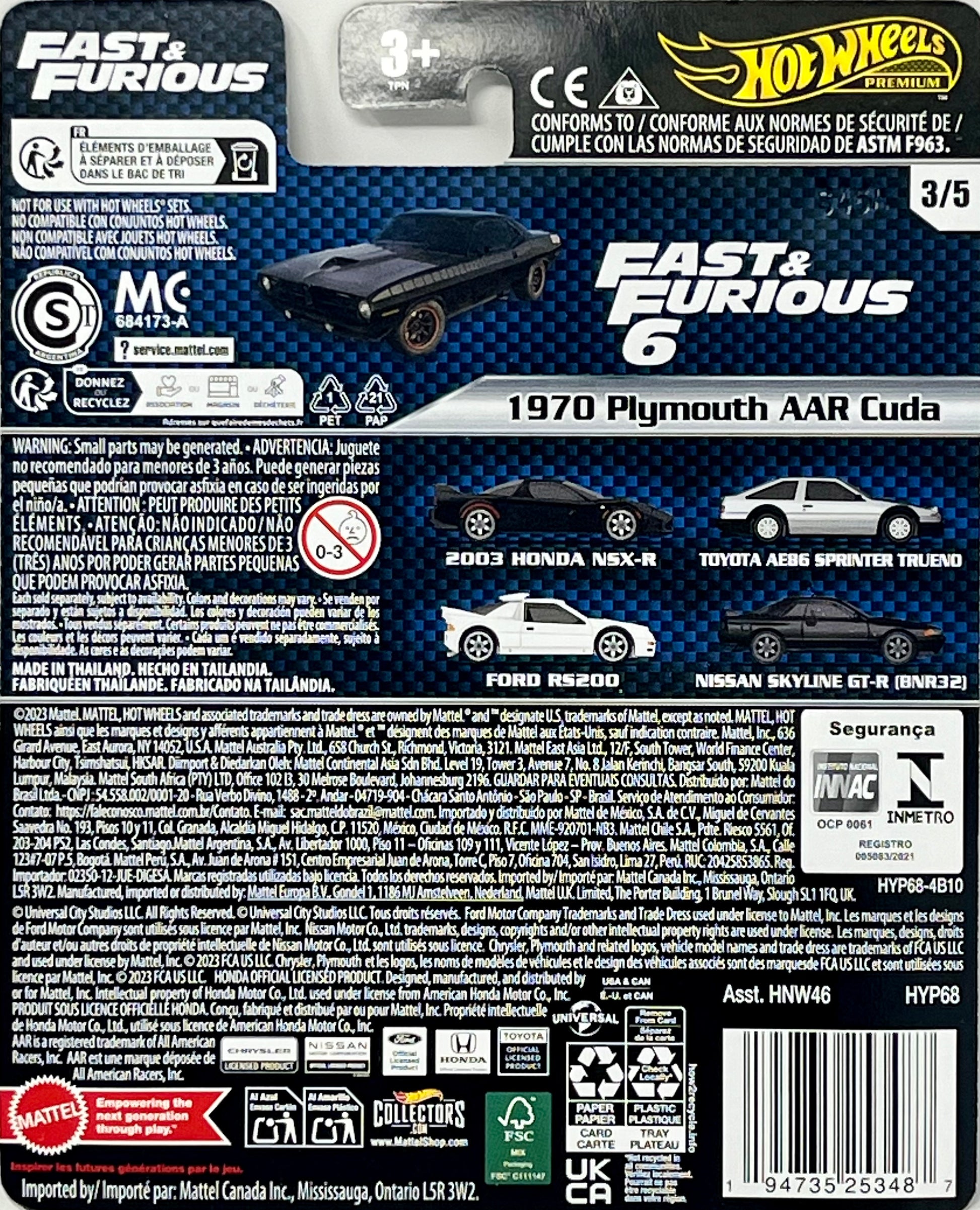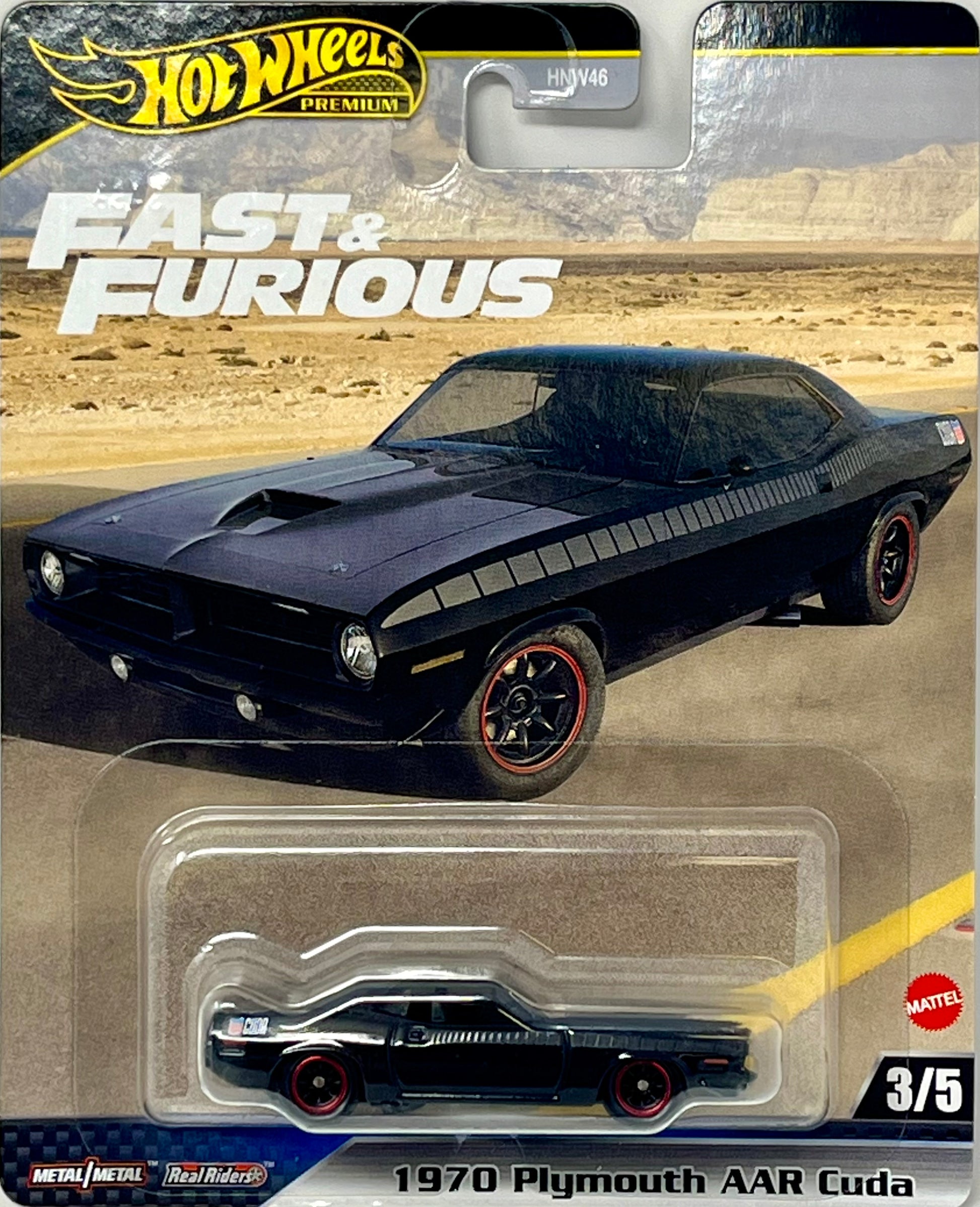 Hot Wheels Toy Car, Premium Fast & Furious 1:64 Scale Die-Cast 1970 Plymouth AAR Cuda for Collectors Inspired by Fast Movie Franchise