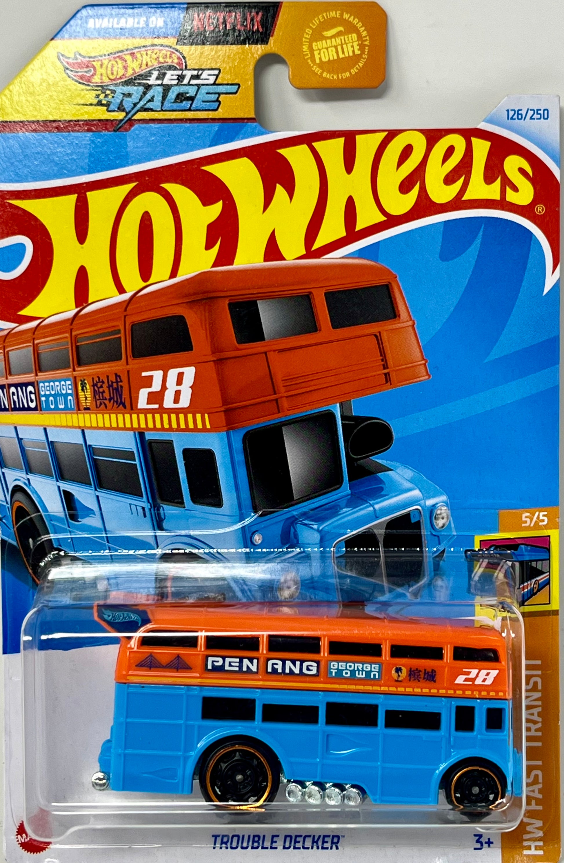 Hot Wheels Trouble Decker HW Fast Transit Orange Blue #126