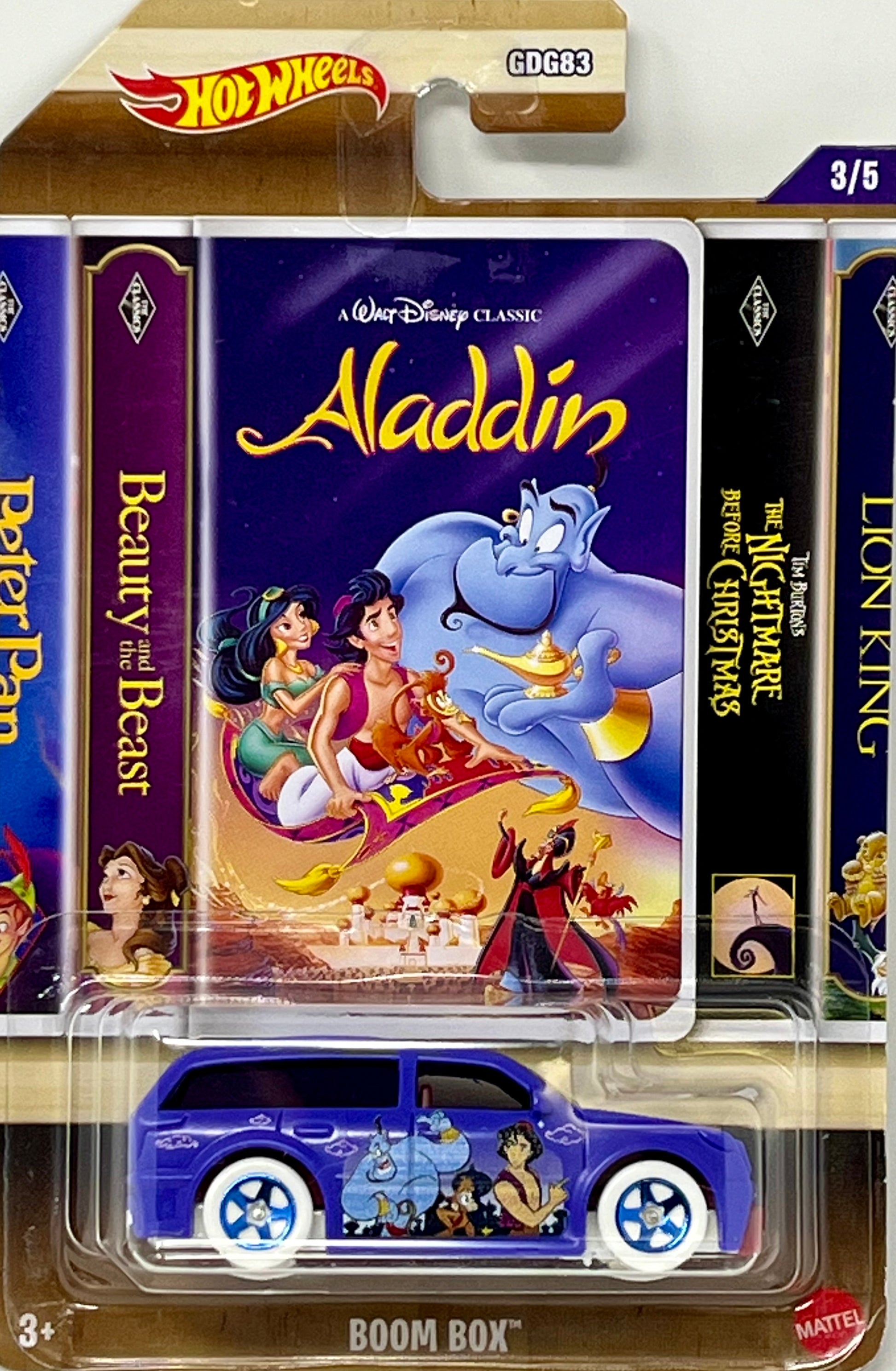 Experience the magic of Disney with this Hot Wheels Aladdin Boom Box from the Classic Movie Series 3/5. This diecast car is a must-have for any fan of the iconic movie. The purple color and 1:64 scale make it a perfect addition to any collection.