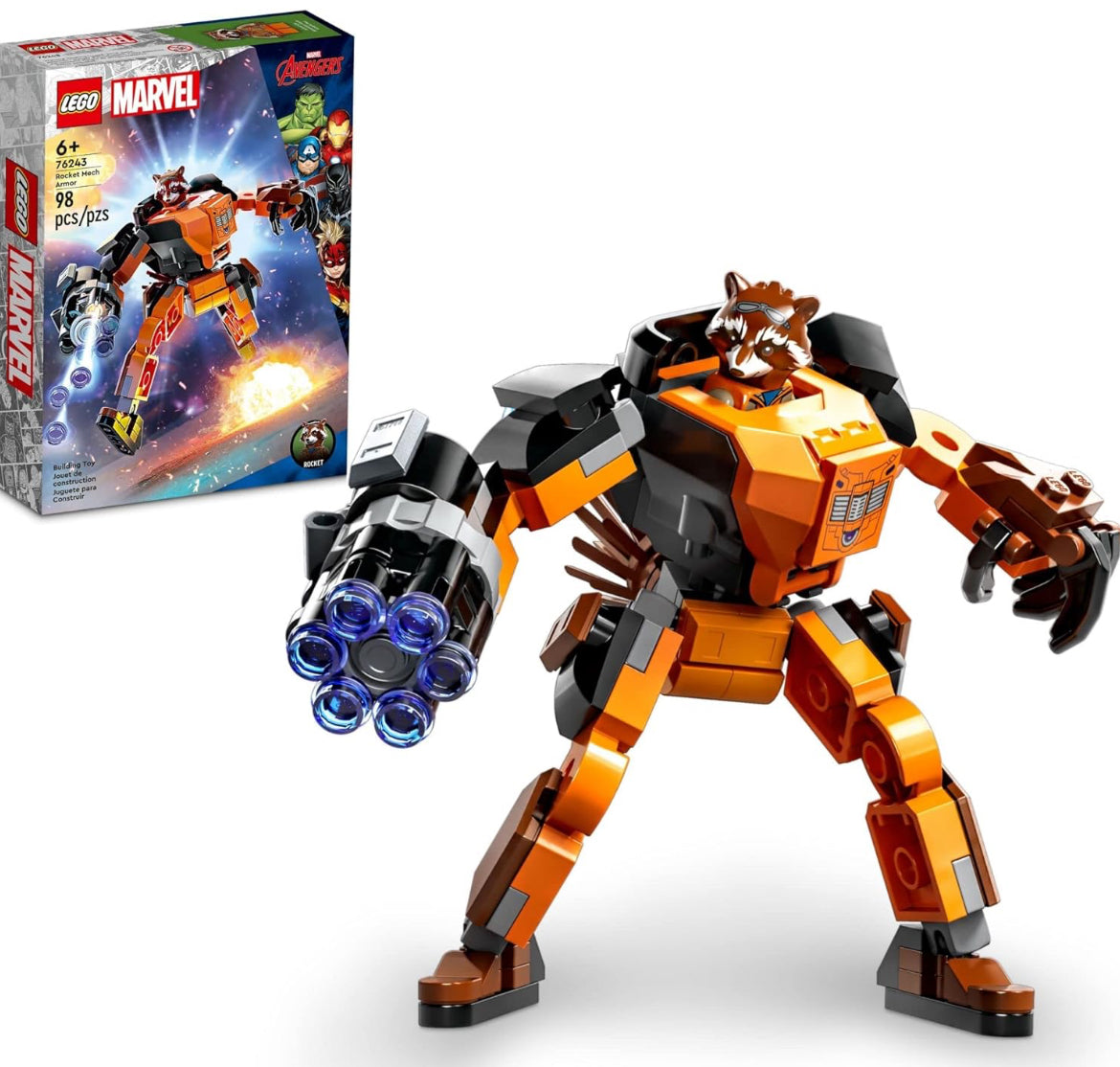 LEGO Marvel Rocket Mech Armor Set 76243, Guardians of The Galaxy Racoon Buildable Action Figure Toy, Avengers Collectable Gift Idea for Kids 6 Plus Years Old