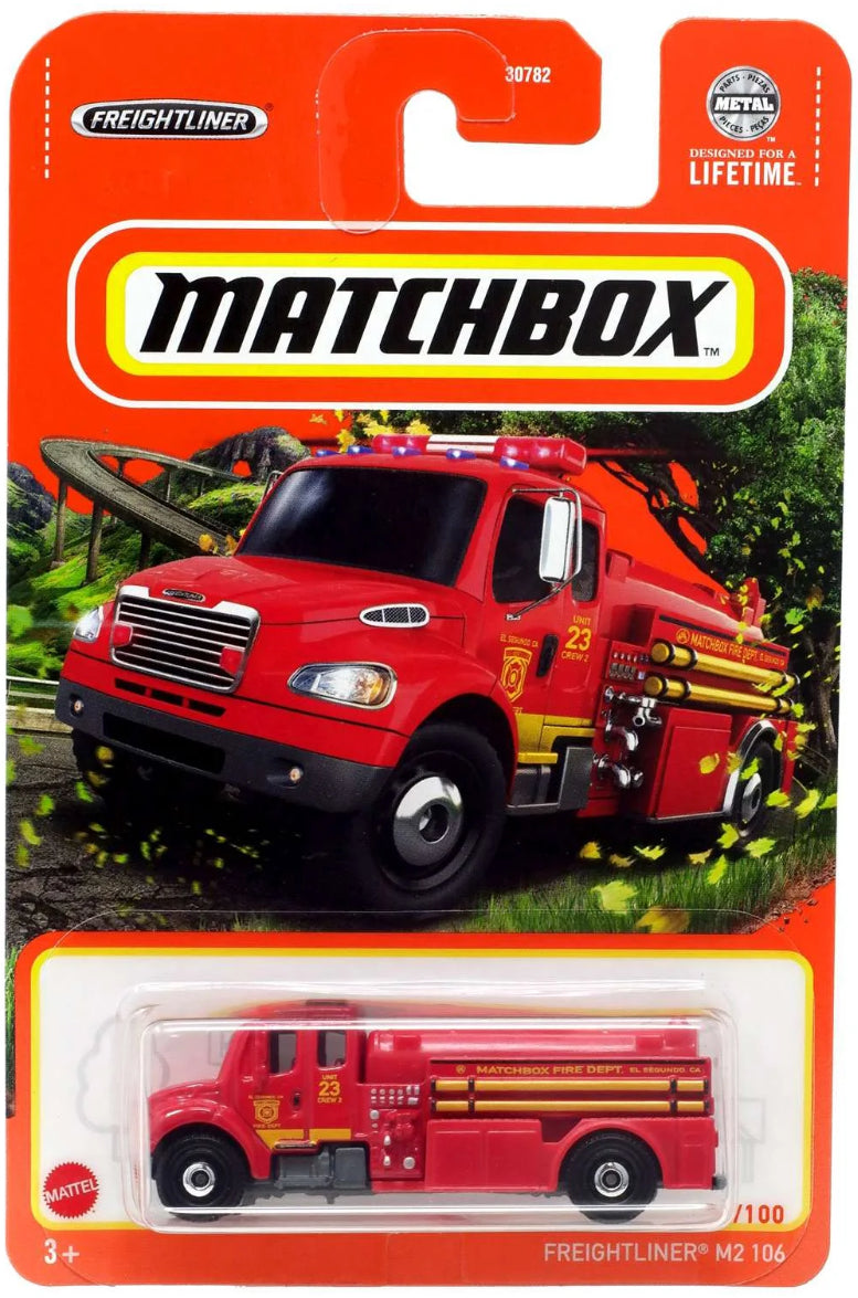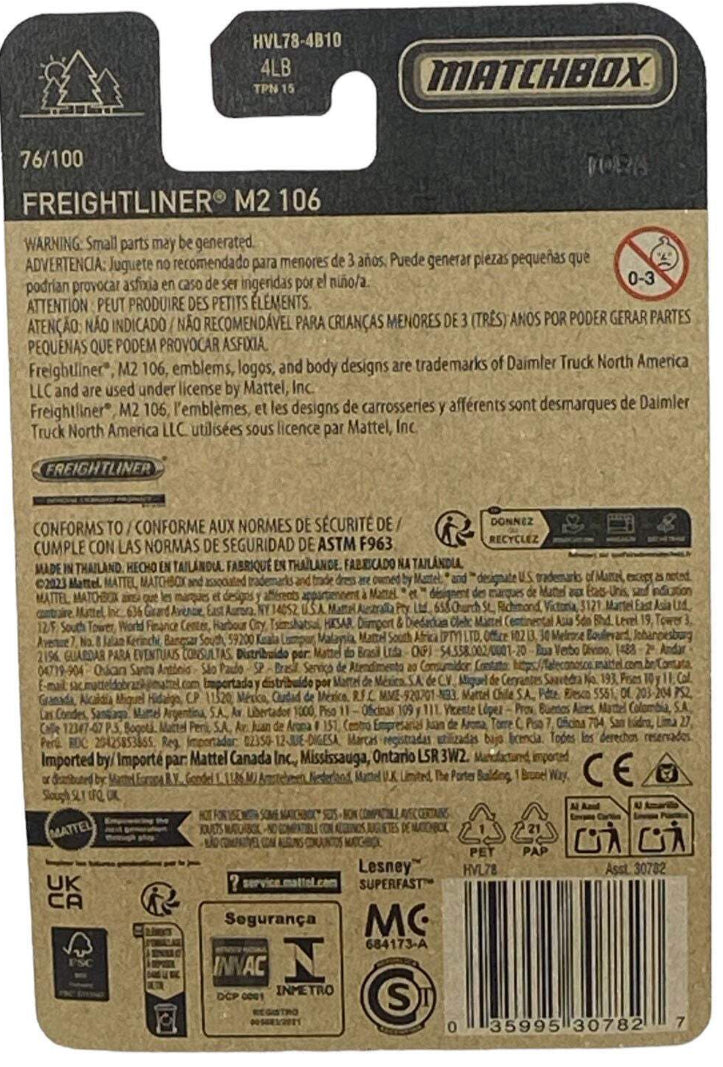 The Matchbox Freightliner M2 106, part of the Matchbox Series 76/100, is a highly detailed die-cast model that captures the essence of the real Freightliner M2 106 truck. This 1:64 scale model features a striking red color and is made from high-quality materials, ensuring durability and authenticity.