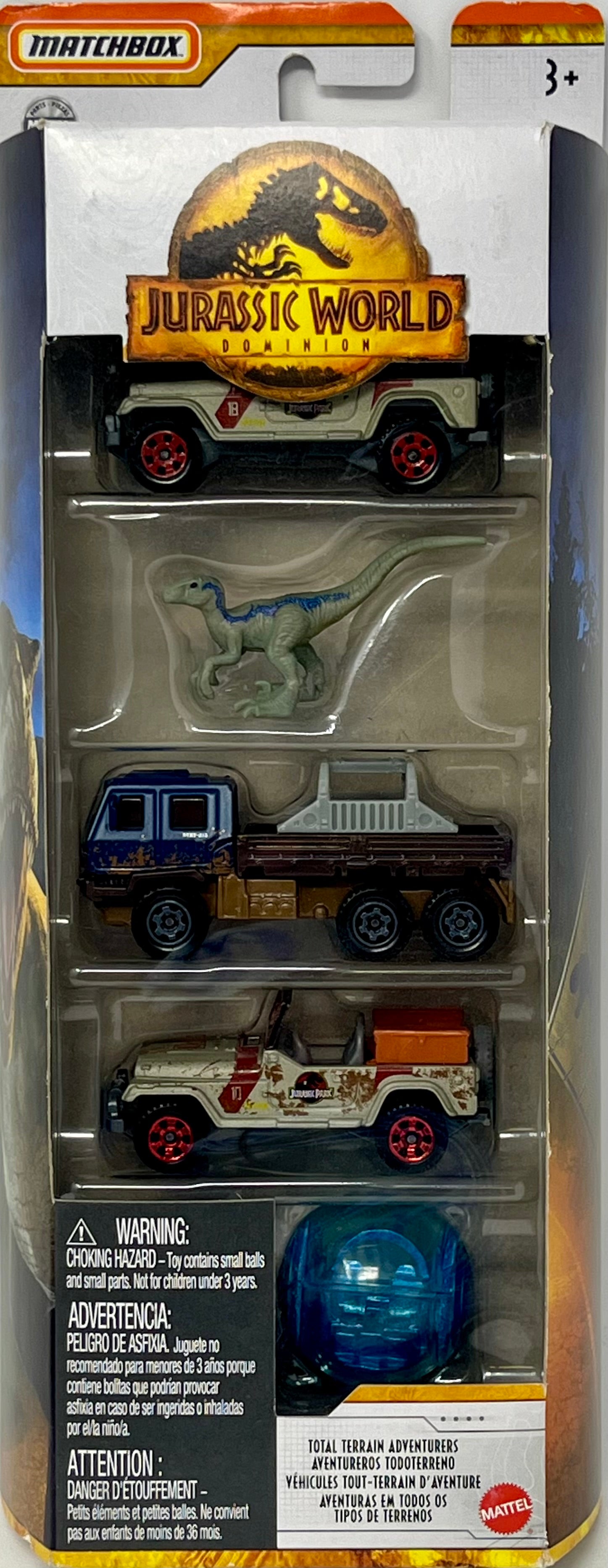 Full of excitement and adventure, these Matchbox Jurassic World Die-cast 5-Packs include 4 1:64-scale vehicles and 1 mini dinosaur in each pack! With intricate detailing and authentic deco, these 1:64-scale die-cast vehicles are inspired by the Jurassic World franchise, including the new Jurassic World Dominion. Plus, each pack contains 1 mini dinosaur for even more ways to play. These 5-packs create opportunities for storytelling and make an action-packed gift for Jurassic World fans ages 3 years old and up. Each sold separately, subject to availability. Colors, decorations, and dimensions may vary.