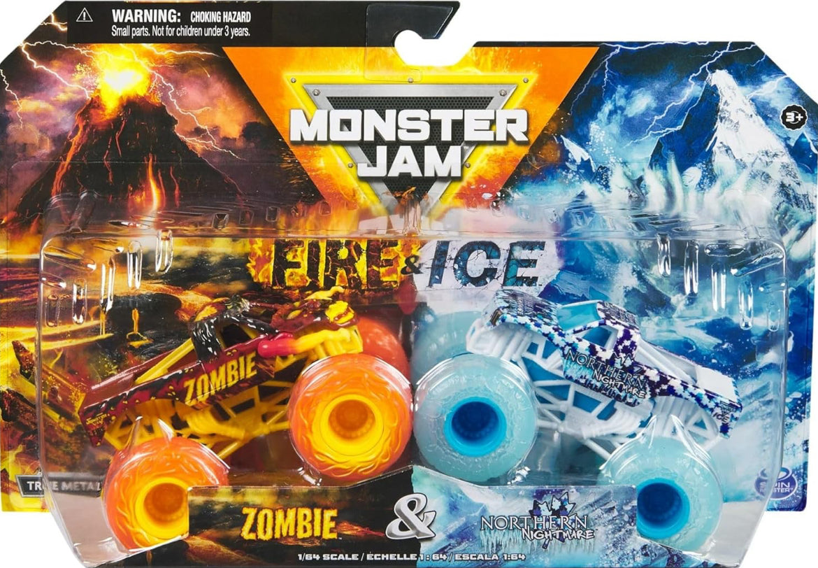 Monster Jam 2024 Fire & Ice 1:64 Diecast Monster Truck 2-pack Zombie & Northern Nightmare