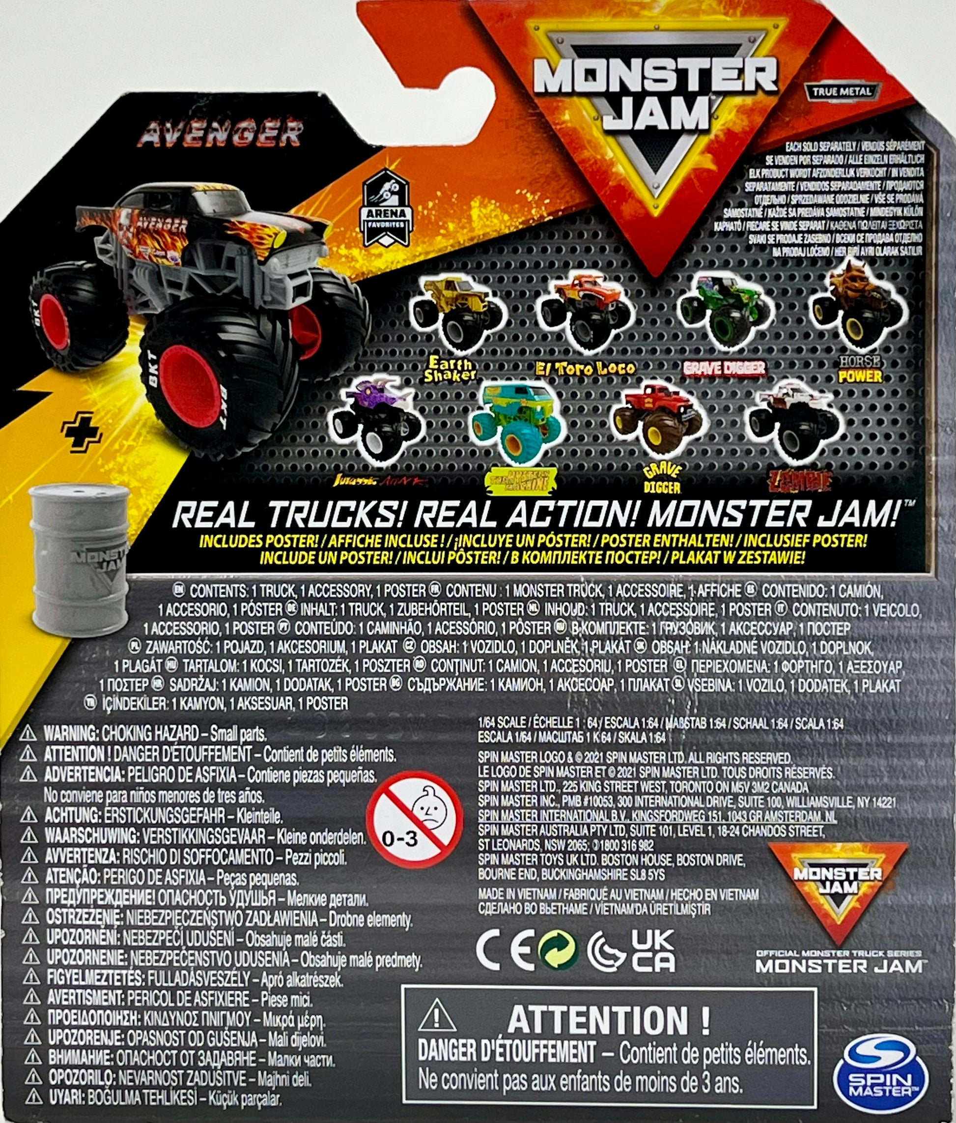 Monster Jam Avenger Series 23 1:64 Scale Arena Favorites w/Barrel