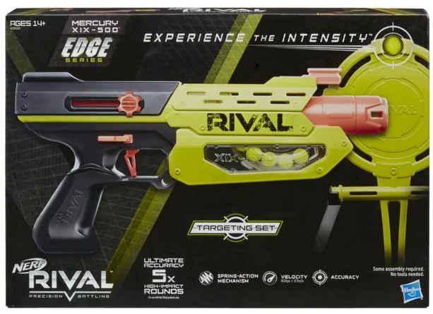 Nerf Rival Mercury XIX 500 Edge Series Ball Dart Blaster with Target and 5 Rounds For Outdoor Games Ages 14 and Up