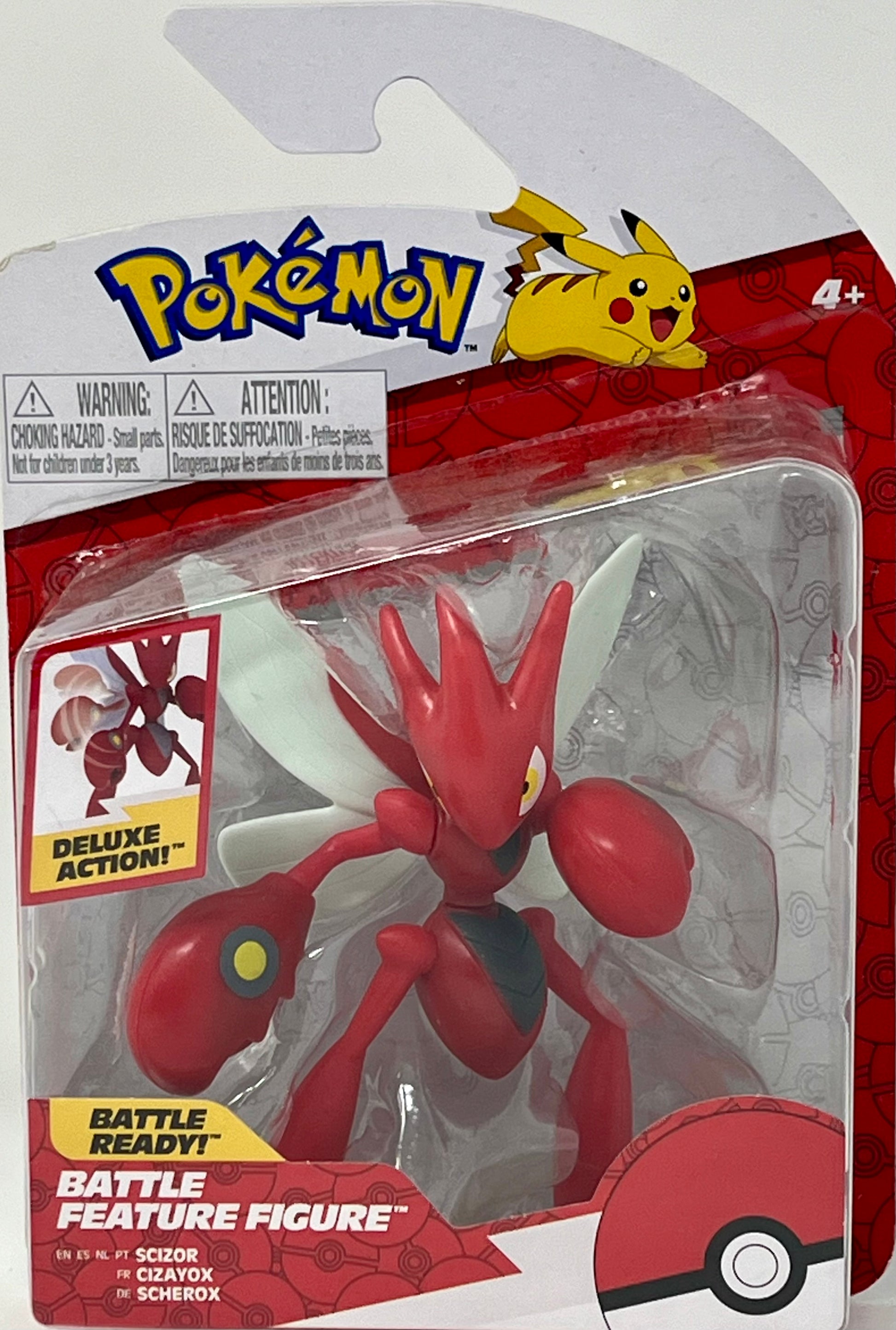 Choose Scizor, the Pincer Pokémon. Featuring multiple points of articulation and a Slashing Pincer, this 4.5-inch figure is made for play and display. It was designed with authentic details and looks like it jumped right out of the Pokémon Animated Series. Add Scizor to your Pokémon team and look out for more Battle Feature Figures. Officially licensed Pokémon product from Jazwares. Ages 4+
