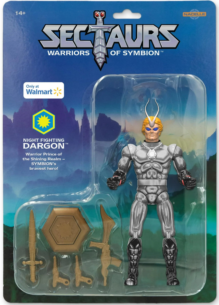 - Sectaurs Warriors of Symbion -Night Fighting Dargon Action Figure-DARGON, the Shining Realm's mightiest hero! He is brash, bold and resourceful. As Prince of the Shining Realm, Dargon has sworn an oath to protect his people at any cost. Box Contents - The iconic hero of SECTAURS lore returns!